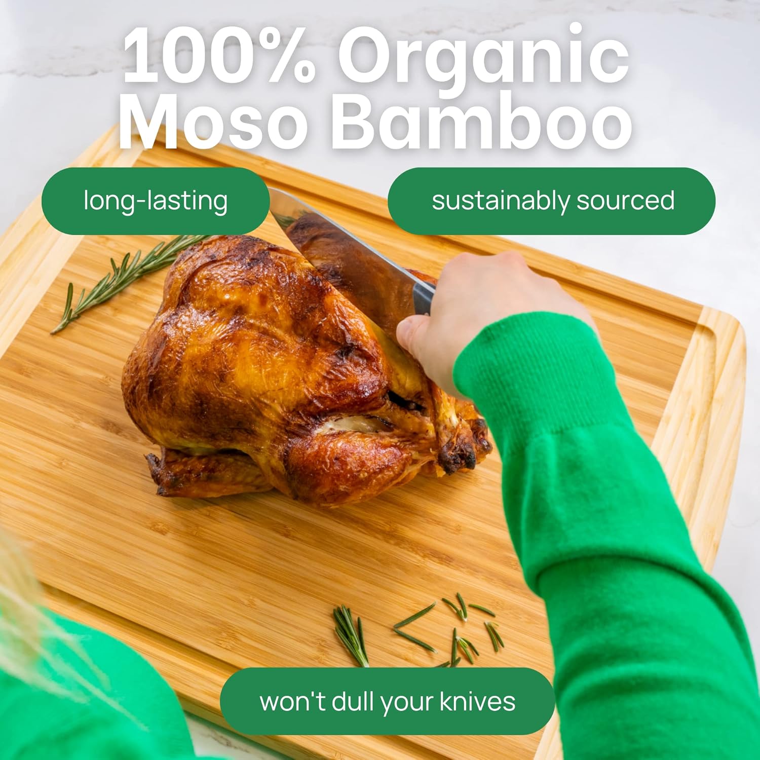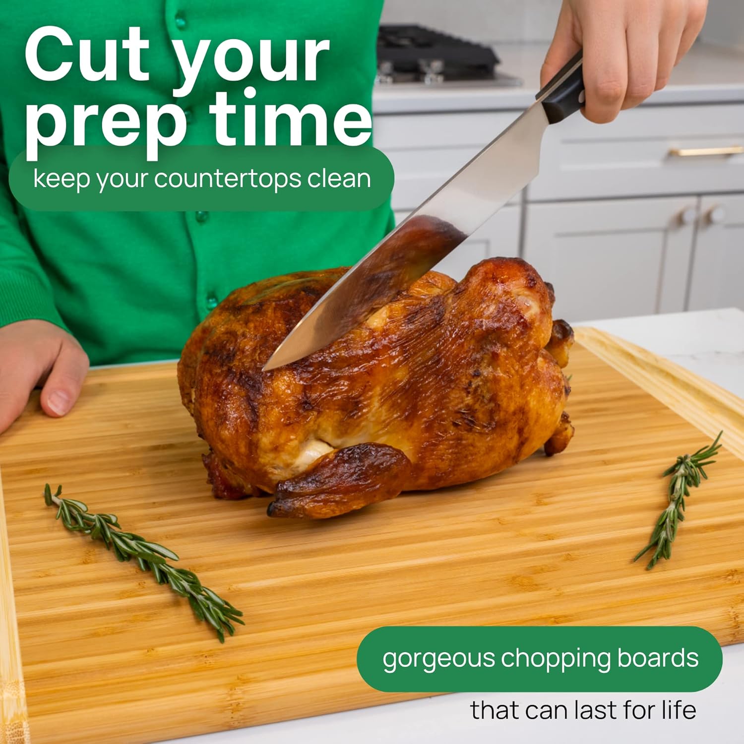 GREENER CHEF 20 Inch Extra Large Bamboo Cutting Board with Lifetime Replacement - Wooden Butcher Block for Kitchen, Carving Meat, Vegetables, and Charcuterie with Deep Juice Groove