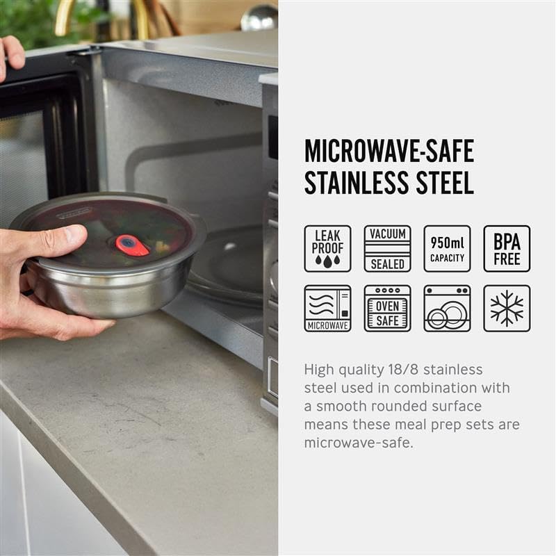 - THOUGHTFULLY DESIGNED - Quality 18/8 stainless steel used in combination with a smooth rounded surface means these food storage lunch bowls are microwave safe, so you can enjoy hot meals on-the-go. Oven (excl. lid), Freezer and Dishwasher safe
