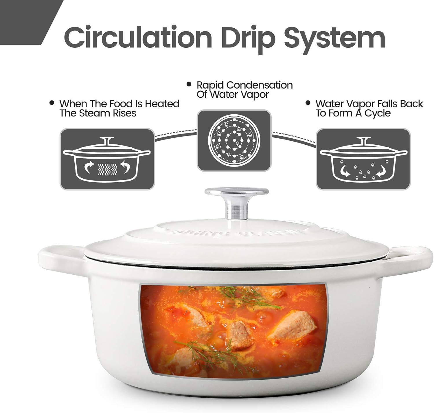 - Self circulation water locking: The dutch oven pot cover is thick and well sealed, which makes it difficult to lose water