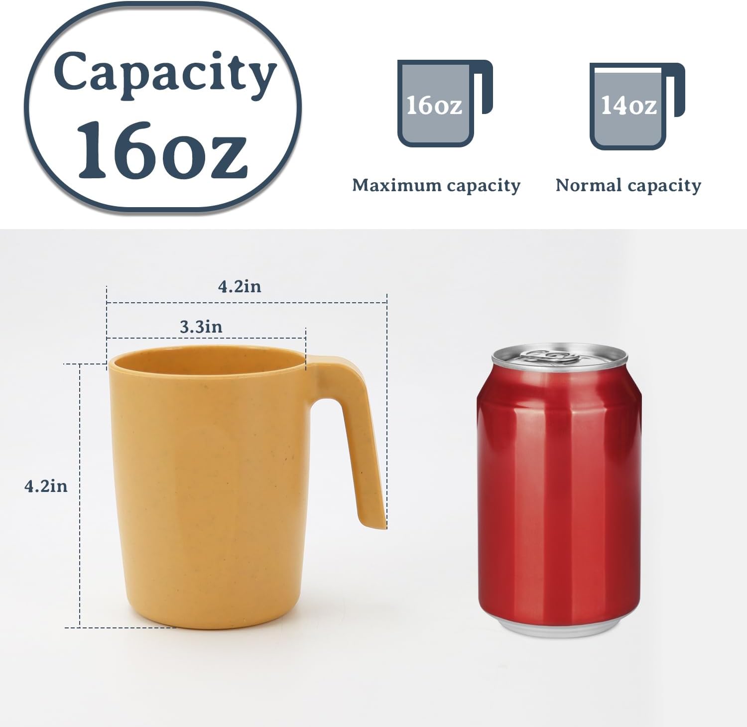 - 【Wheat Straw Material】Each 16oz Unbreakable mug is constructed with organic wheat straw fiber.It is 100% BPA free and non-toxic.It’s a good alternative to plastic drinking cups. This series of wheat straw mug has vibrant and festive colors,bringing bonus happiness to your indoor and outdoor meals.