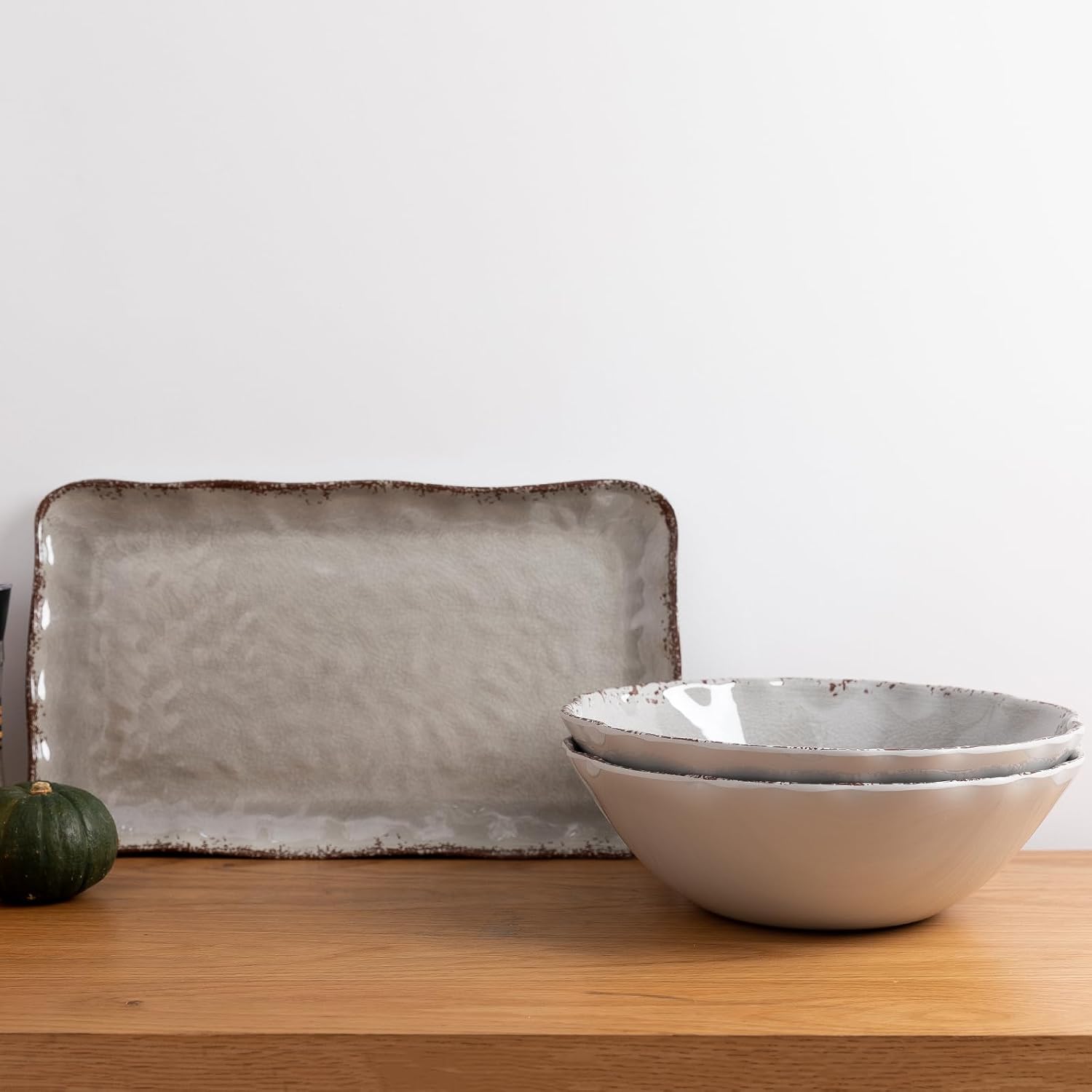 LEHAHA Farmhouse Melamine Serving Bowls,Set of 2, 130 OZ Break Resistant Large Deep Salad Bowls, BPA Free Large Bowl for Serving Salad, Fruit, Vegetables and Food Storage, 12" x 4", Gray