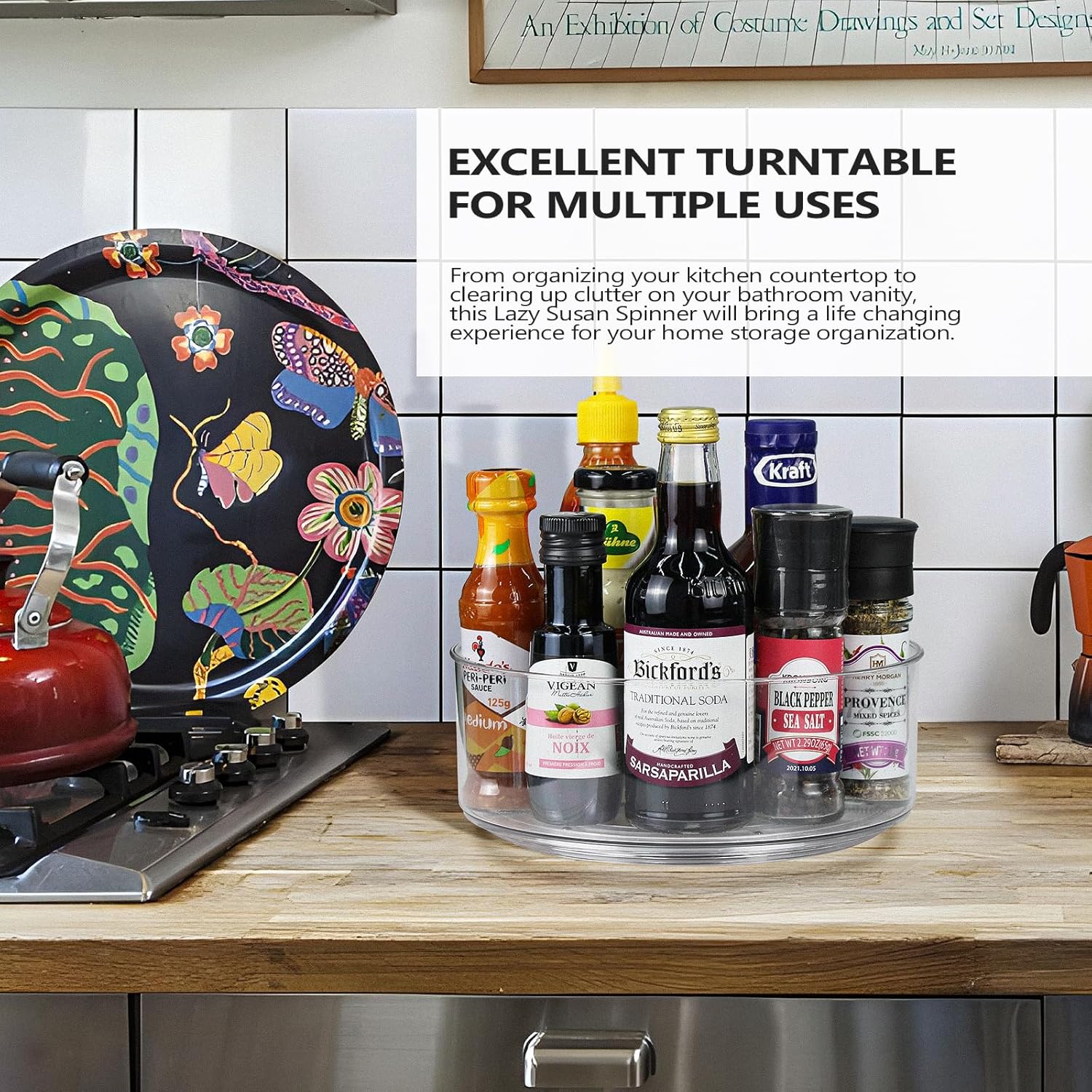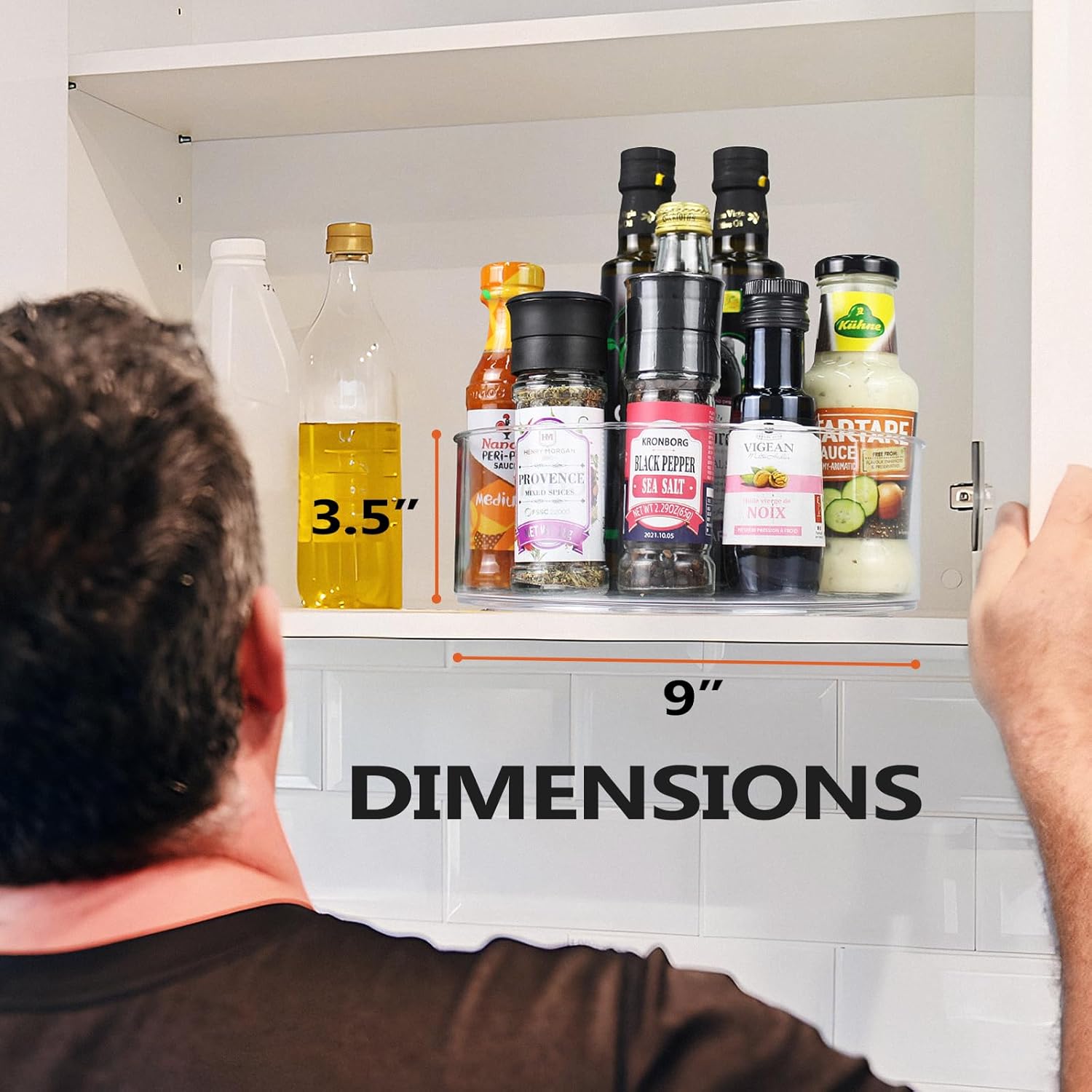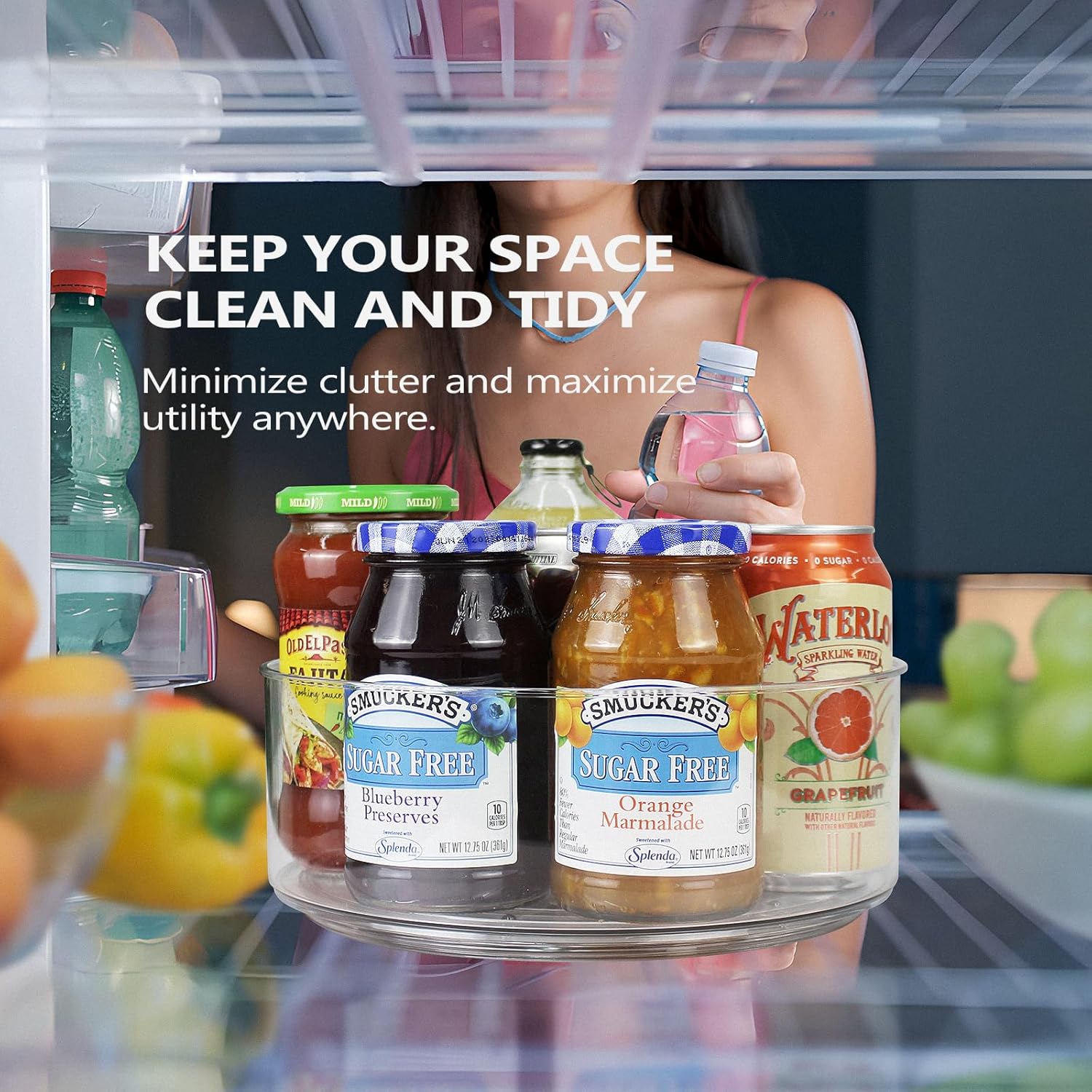 - Widely Used, Keep Your Space Clean & Tidy:Multifunctional refrigerator lazy susan for home storage. Ideal for organizing kitchen items like jars, spices, condiments, and paper towels. Save space on countertops, cabinets, and more with this fridge lazy susan solution. This clear lazy susan organizer can Keep your home clean and tidy