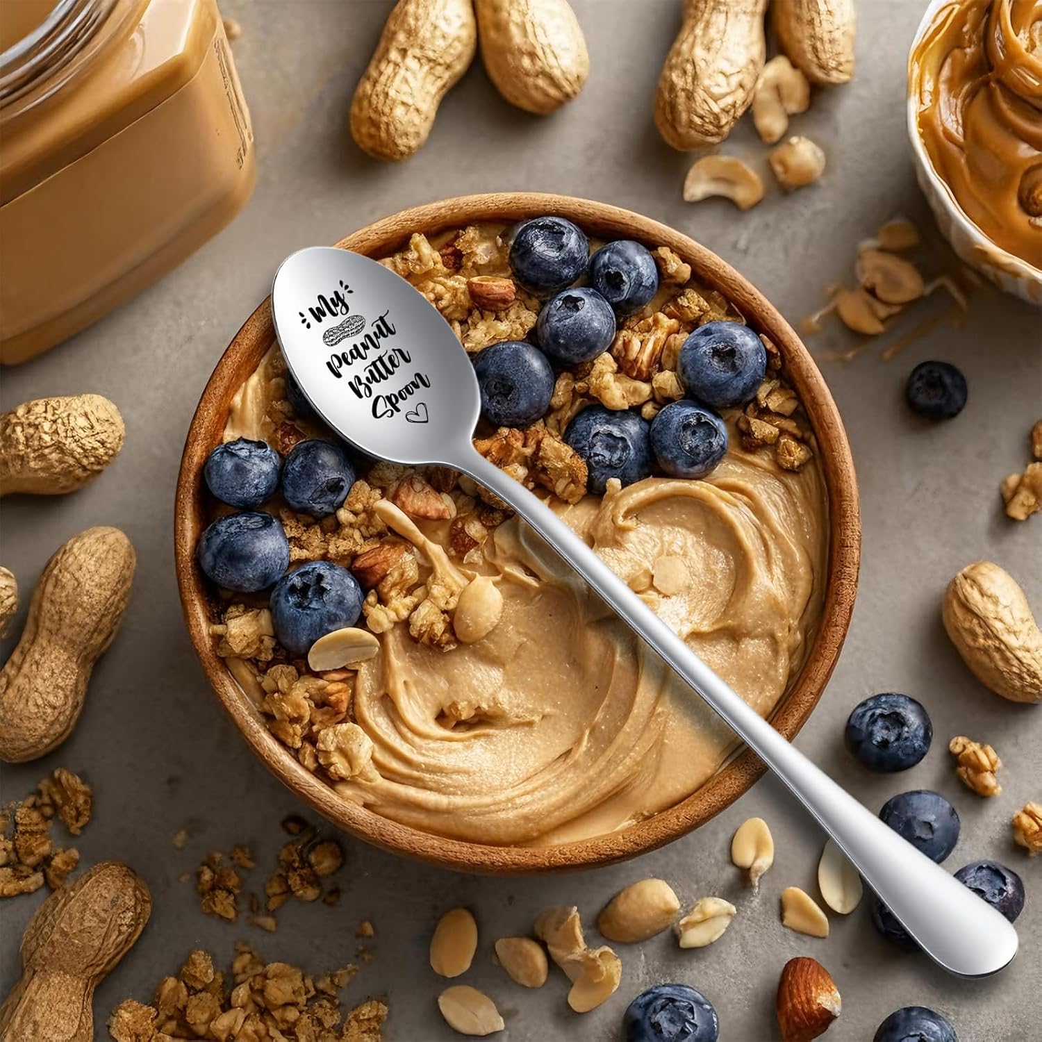 Peanut Butter Spoon - Funny Engraved Stainless Steel Spoon for Peanut Butter Lovers, Dessert Spoon for Moms, Dads, Boys, Girls, Kids Birthdays, Christmas, Valentine's Day G