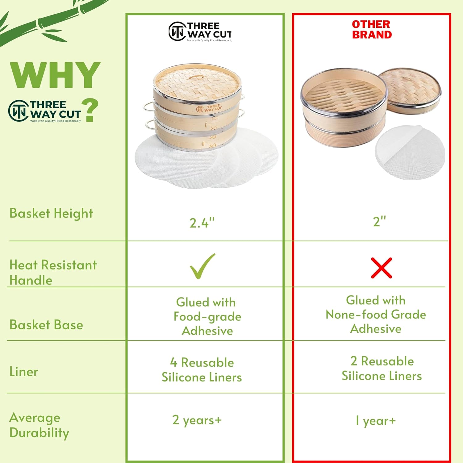 - No more burnt fingers - Each steamer baskets have heatproof handles for convenient lifting