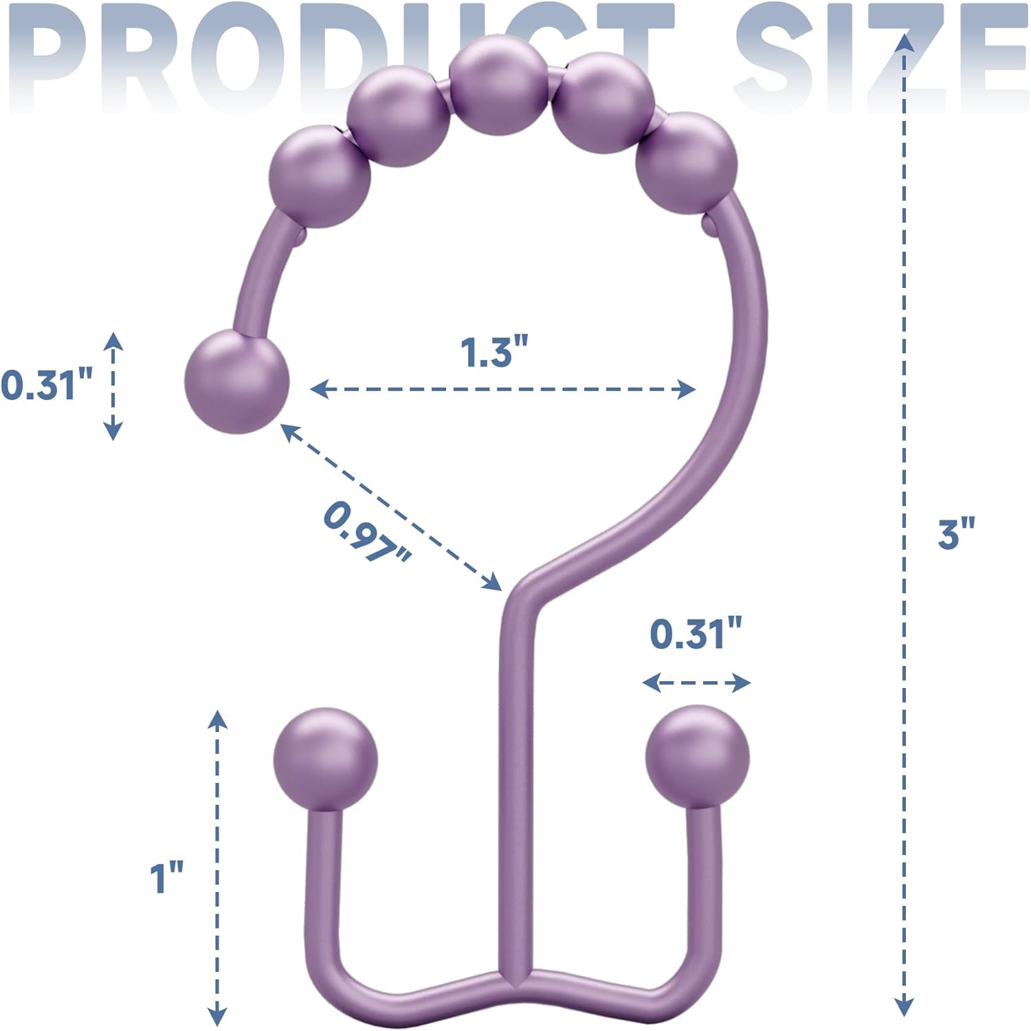 - High quality metal - These double glided shower curtain rings are made of high quality and selected metal. These shower curtain hooks are 3 inches long and fits most standard size shower curtain rods (less than or equal to 1.3 inches).
