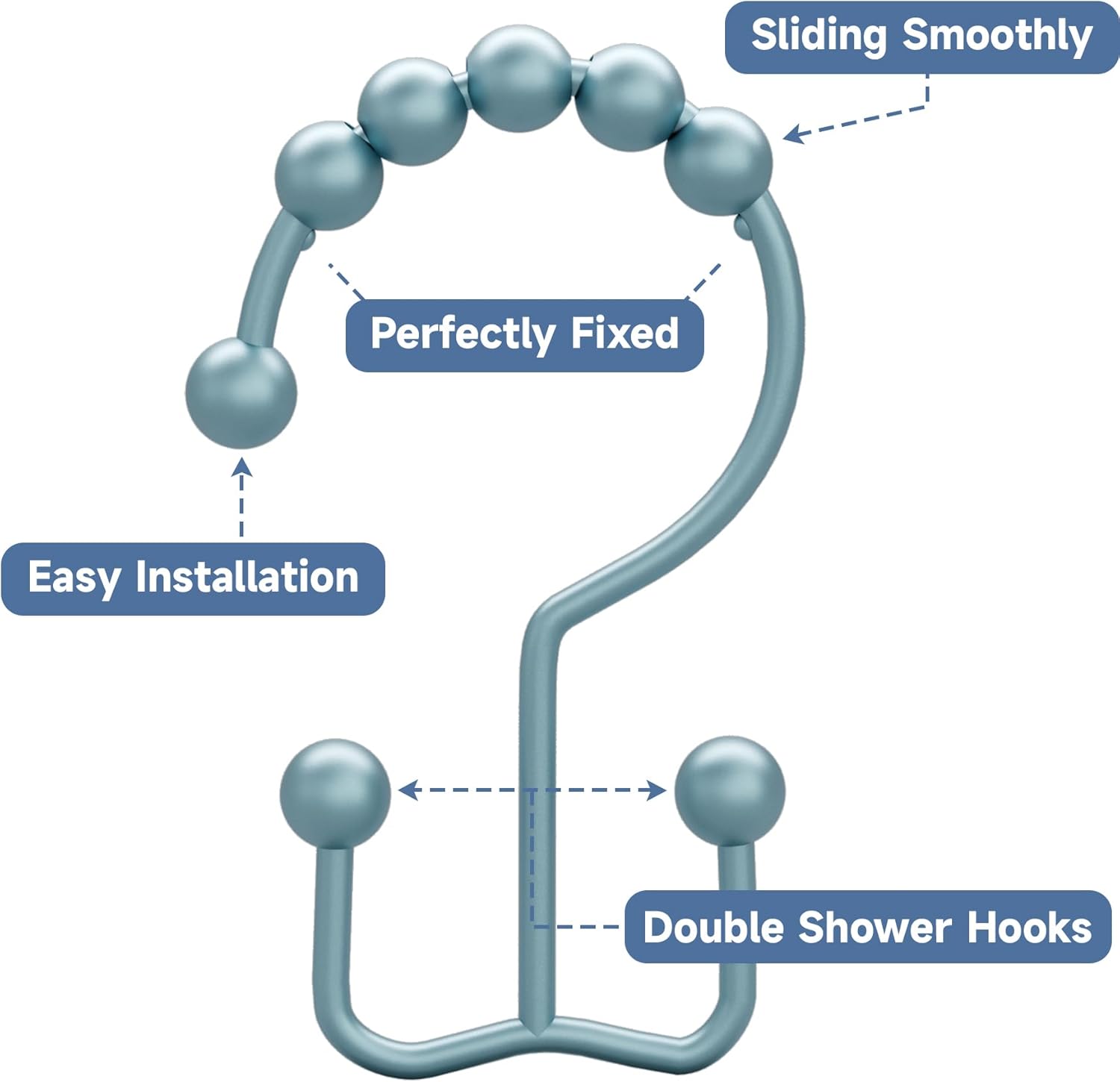 - Smooth gliding - Engineered spherical roller balls of shower curtain hooks can glide smoothly and fast across shower rod.