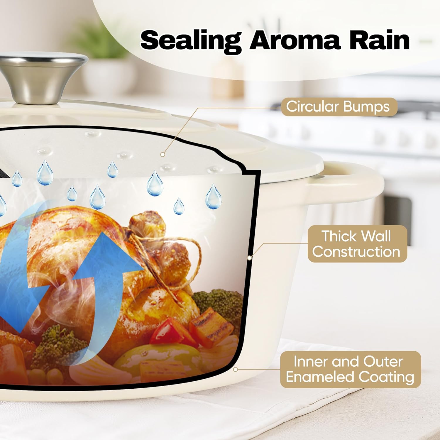 Oval Dutch Oven for Bread Baking, 4.5 Quart Non Stick Enameled Cast Iron Dutch Oven Pot with Lid, Oven Safe Oval Casserole with Lid up to 500°F for Baking, Braising, Stews, Roasting (Beige)