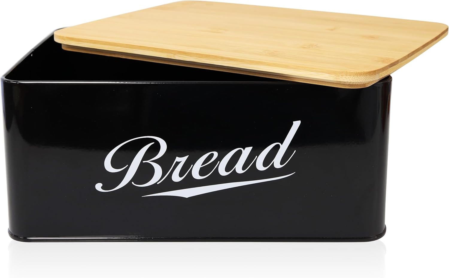 RoyalHouse Modern Metal Bread Box with Bamboo Cutting Board Lid, Bread Storage Container for Kitchen Counter, Vintage Kitchen Decor Organizer - Black
