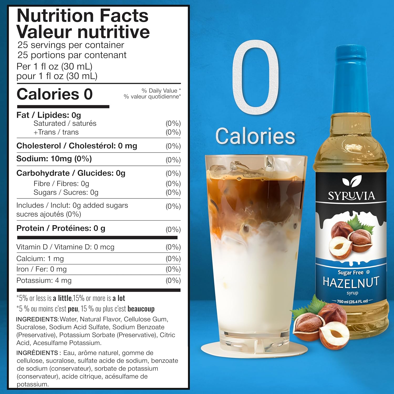 Syruvia Sugar Free Coffee Syrup, Hazelnut Flavored Syrup for Drinks, Lattes, and Desserts – 25.4 fl oz