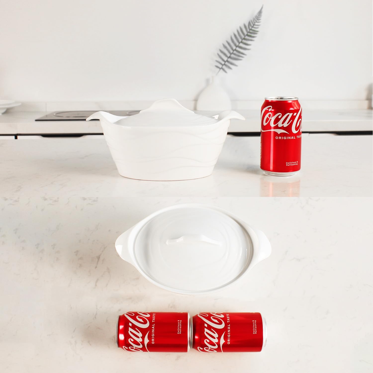 - ARTWORK DESIGN - The Unique shape casserole dish with lid for enjoyable dining time. Remarkable display can be a charming decoration even an artwork in your dining table and kitchen.