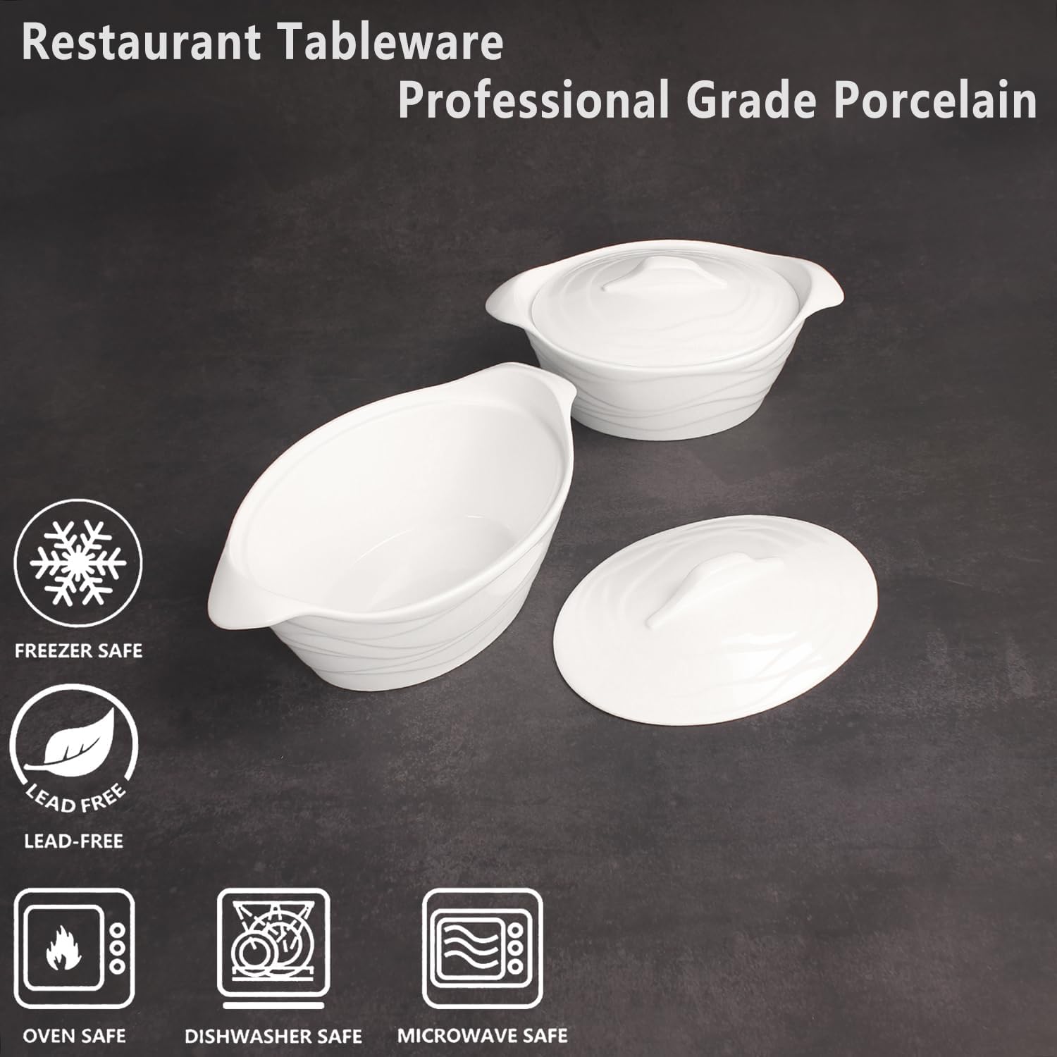8" x 6" Ceramic Casserole Dish with Lids 31 Oz White French Soup Tureen Bakeware Set with Handle - 10 IN, Chip and Crack Resistant Baking Dish, Microwave, Dishwasher, Oven, Fridge Safe