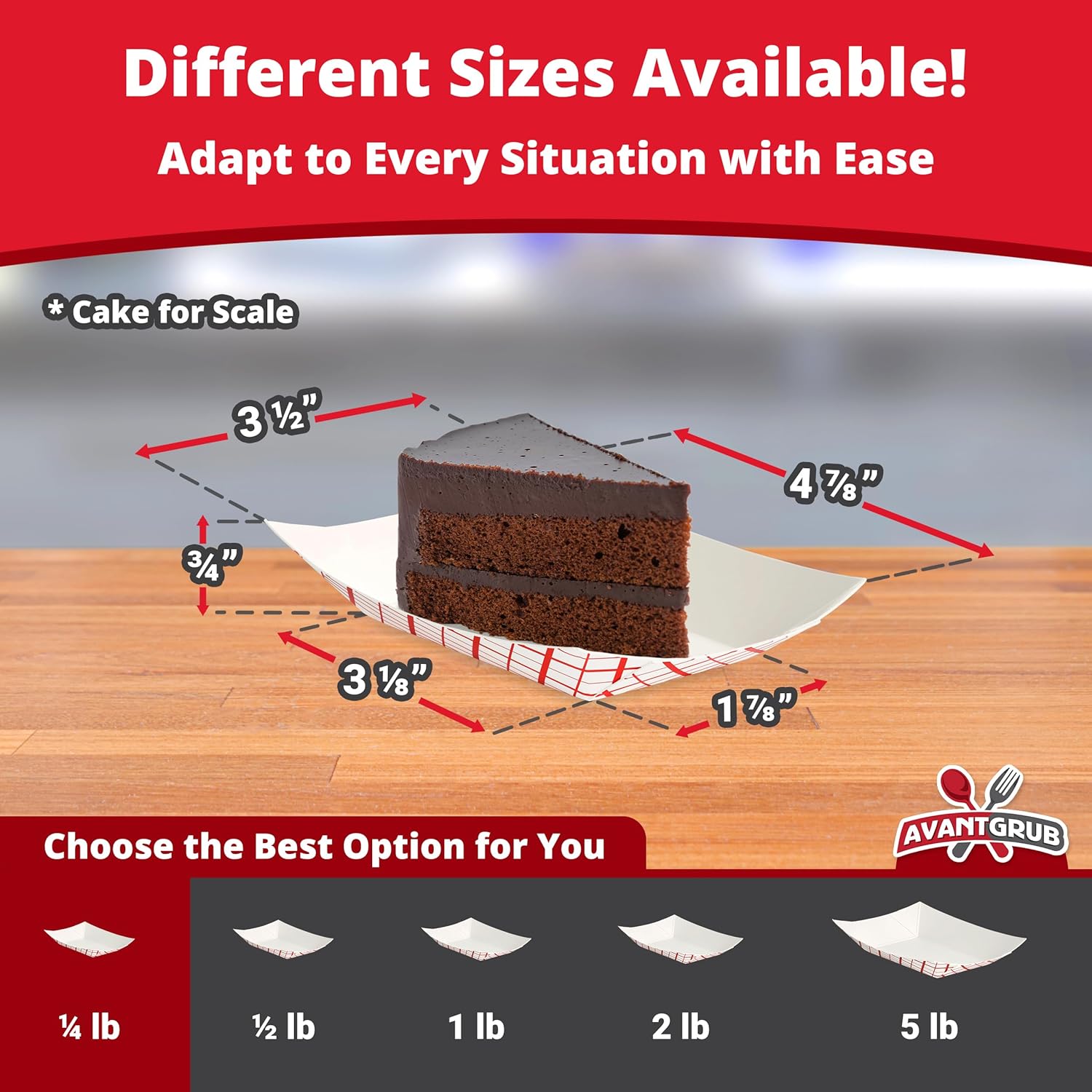 Heavy Duty, Greaseproof .25 Lb Paper Food Trays 200 Pk. Recyclable, Coated Mini Paperboard Baskets. Ideal Tray for Festival, Carnival and Concession Stand Treats Like Fries, Ice Cream and Onion Rings