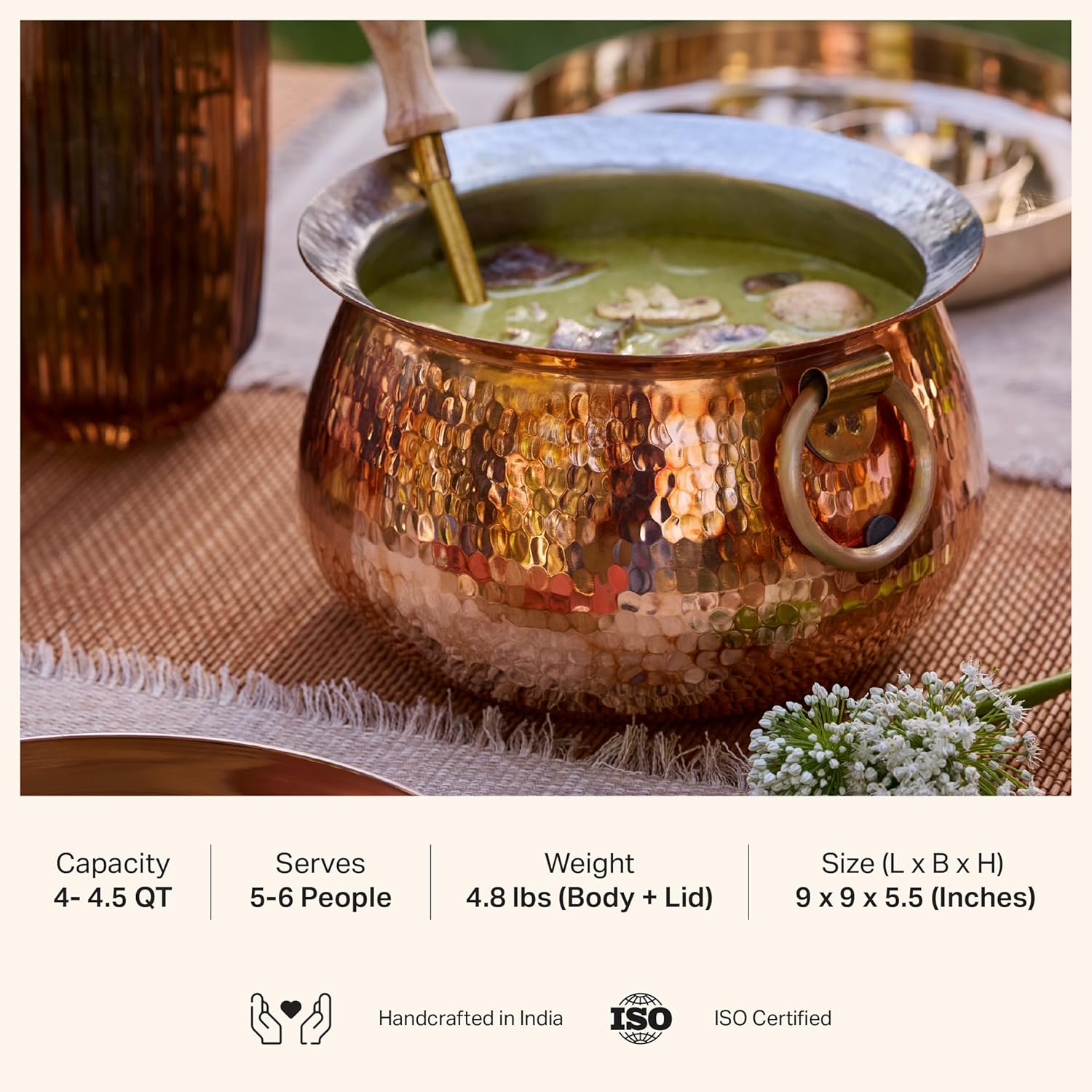 - Traditional Craftsmanship: Each Lagaan measures approximately 9" x 9" x 5.5" and is handcrafted, ensuring unique quality and authenticity in every piece. Comes with a Lid made of Brass.
