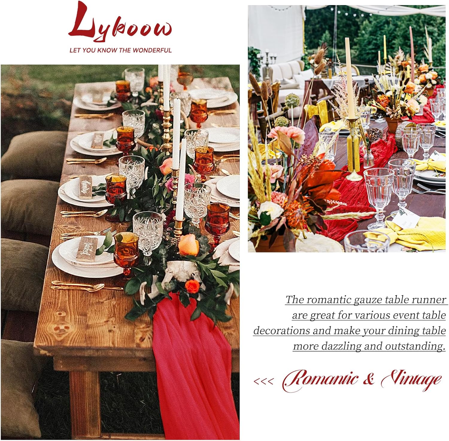 - 【Elegant Display for Boho Tablecloth Runner】- The table runners are made of cotton cheesecloth with wrinkles. Soft to the touch, reusable, washable and fade resistant. Great for creating beautiful pleats or letting them float loosely on the floor, adding a touch of unique and elegant to your parties and events. Use Lykoow cheesecloth table runners for any occasion or decorative need.