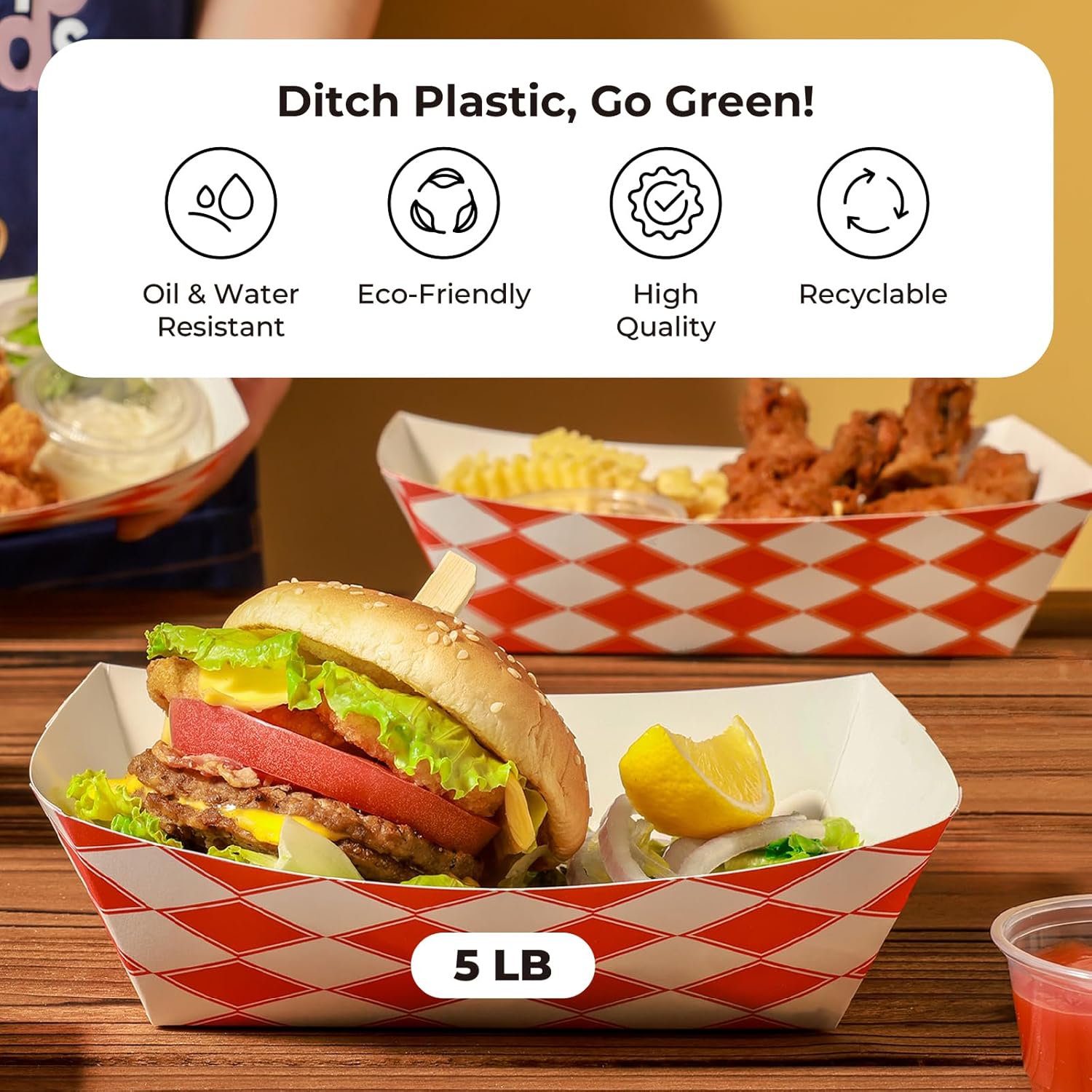 - Classic Design: These rectangular paper food trays are designed with a red checkered exterior that will give your party or picnic that fun, classic feel that you and your guests will love. Bring that rustic feel to birthday parties, weddings, baby showers, picnics, carnivals, and more.