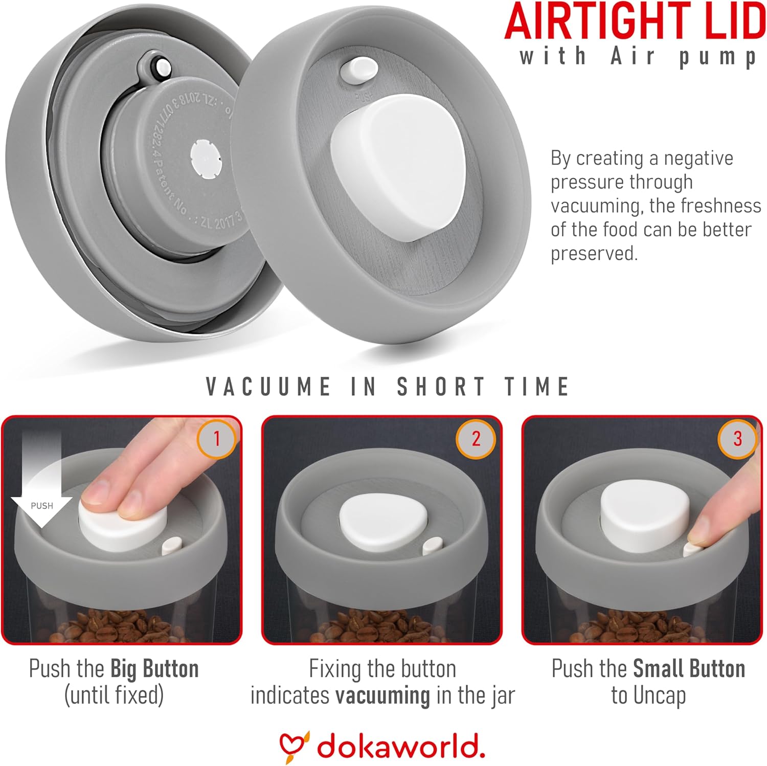 - Seal in the flavor and aroma with coffee bean storage containers! The Press-Down Vacuum Lid of our glass storage jars creates an airtight barrier that keeps coffee beans, pasta, and cereals fresh and flavorful for up to 5 times longer.