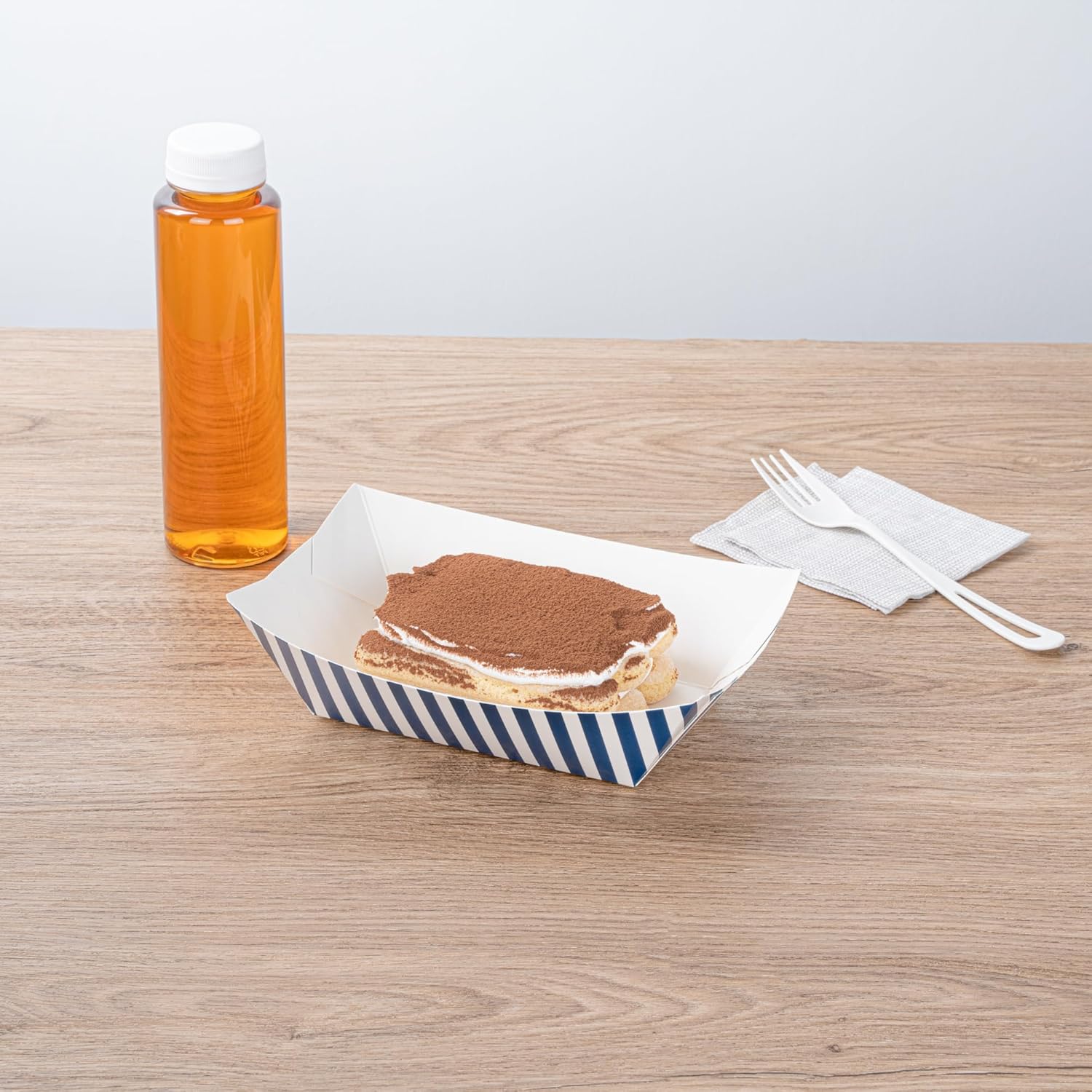 Restaurantware Bio Tek 1 Pound Food Boats 200 Disposable Paper Food Trays - Heavy-Duty Greaseproof Striped Paper Food Boats For Snacks Appetizers Or Treats Use At Parties Or Carnivals