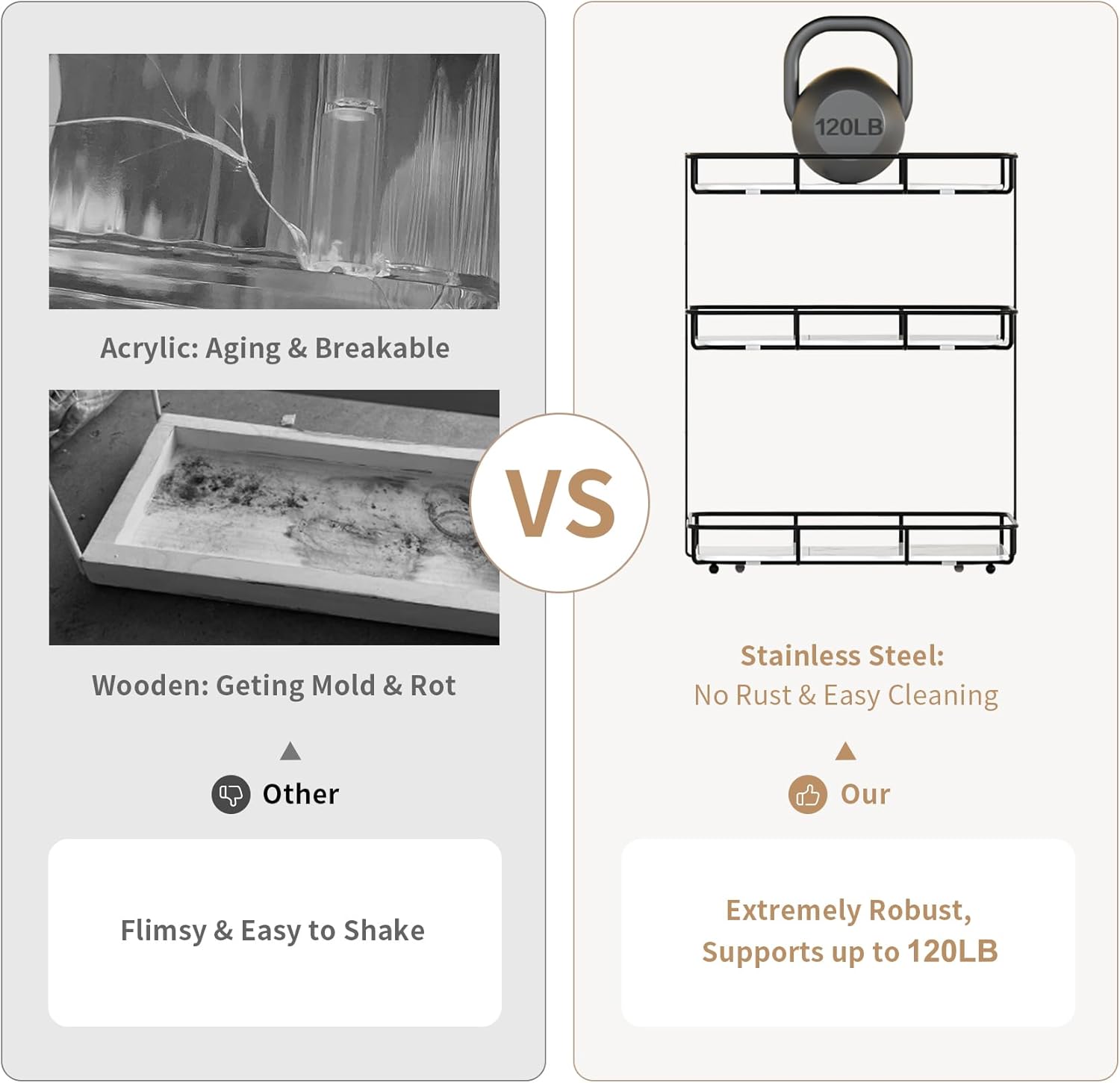 - EASY TO CLEAN: With a sturdy stainless steel frame that can prevent corrosion in wet places and removable ceramic trays with a luxurious marble pattern, this dresser top stand is both functional and easy to clean.