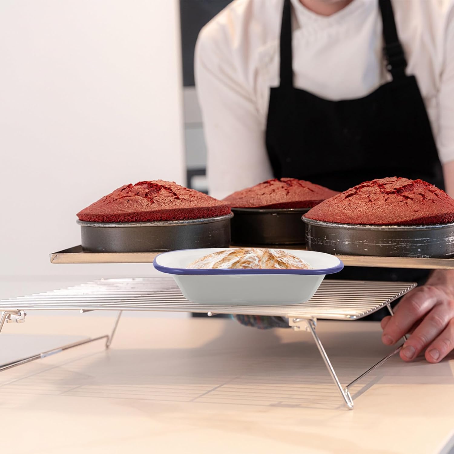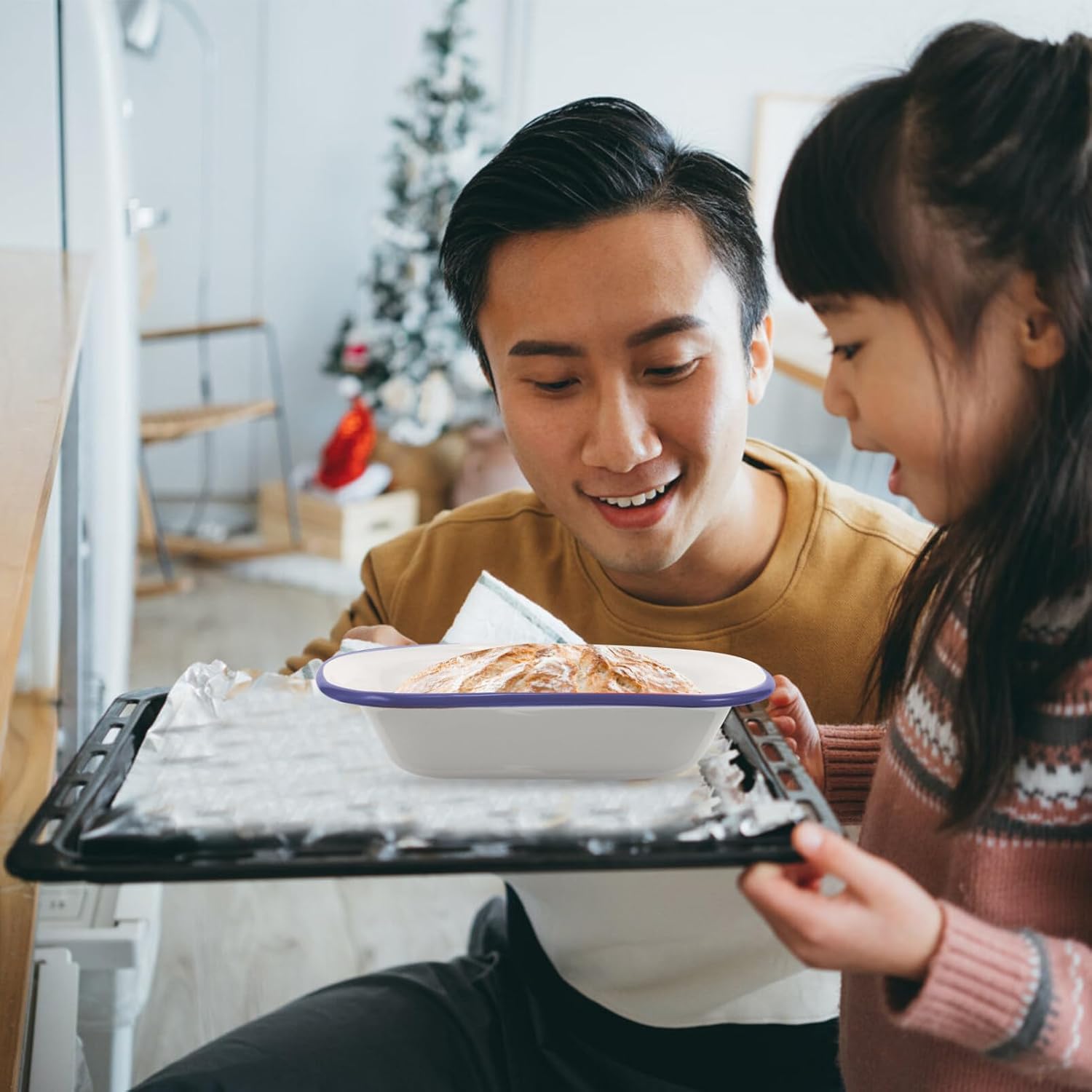 - Bread Baking Pan:Multifunctional Storage Tray Is Stable Material, Safe. Pan Can Be Used for Various Purposes, Widely Use. White Enamel Baking Pan Rectangular Bread Sheet Serving Tray Oven Dish Roasting Server Palette Tray Enamelware Collection for Home Kitchen