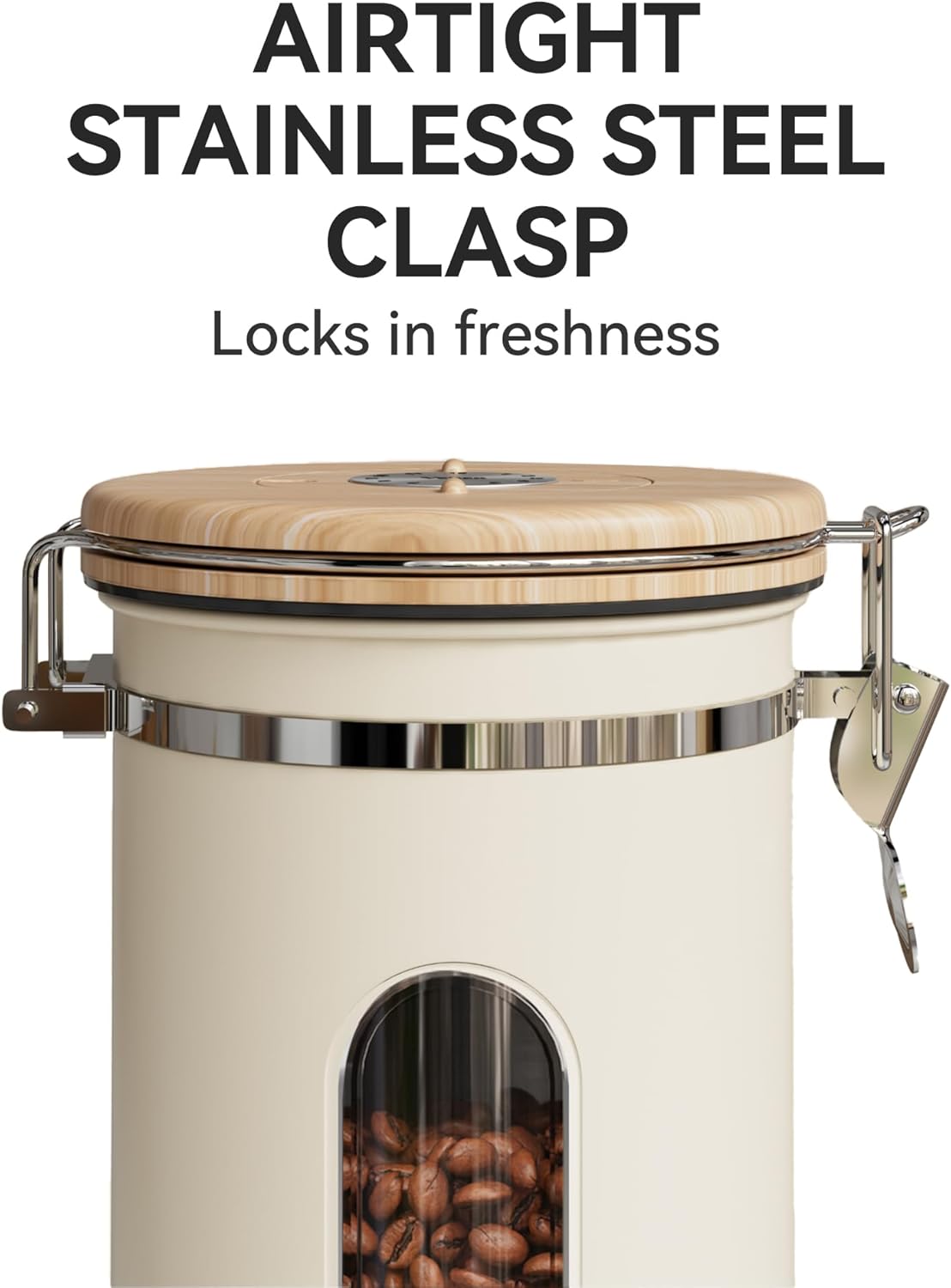 - Date Tracker, Window, & Free Scoop:Keep your coffee fresh by setting storage or expiry dates with our date tracker on the lid. A handy window lets you see how many beans are left without opening the canister; Plus, we provide a free stainless steel coffee scoop that attaches with a hook