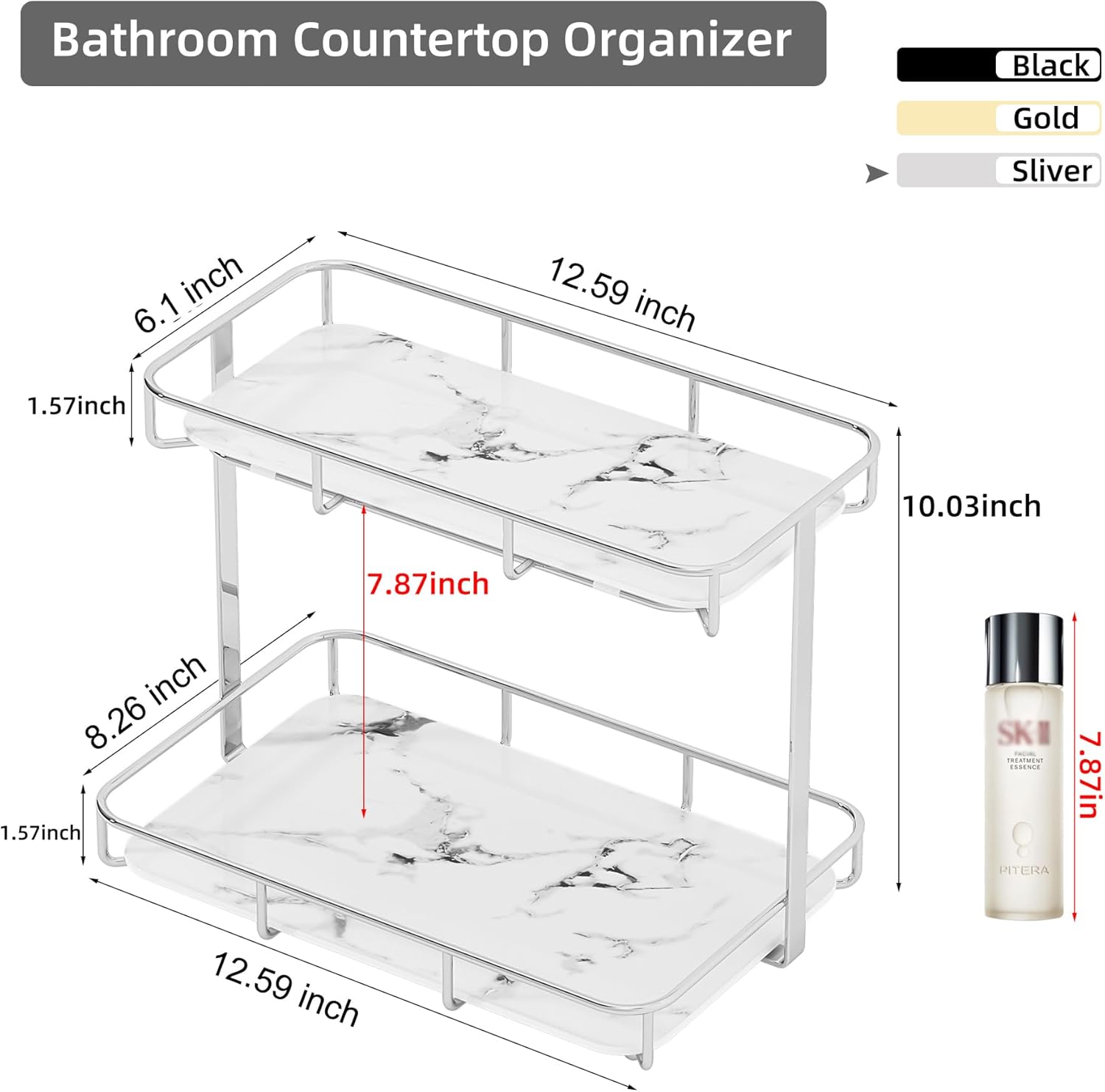 - MULTI-PURPOSE STORAGE SHELF: This countertop organizer is perfect for adding extra storage to small areas like your dresser, sink or kitchen. The modern and simple design of this vanity shelf makes it a great way to declutter and organize your home in a cinch.