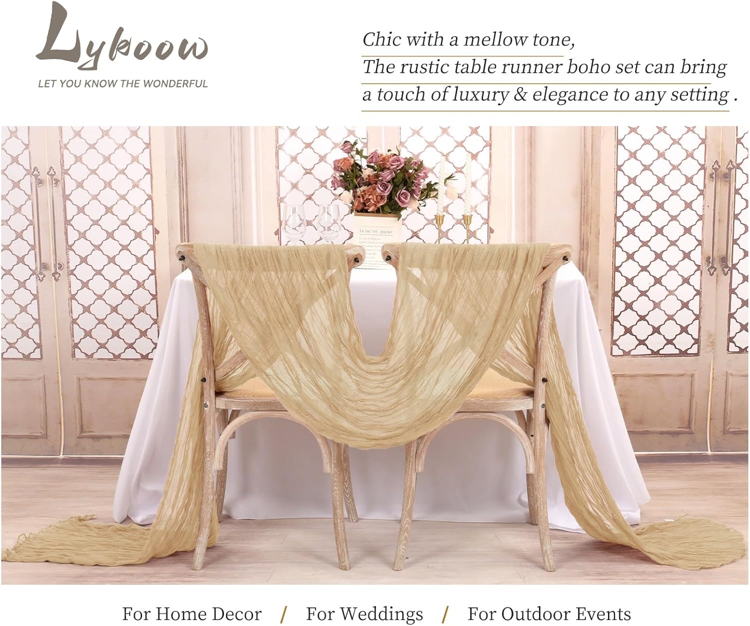 - 【Elegant Display for Boho Tablecloth Runner】- The table runners are made of cotton cheesecloth with wrinkles. Soft to the touch, reusable, washable and fade resistant. Great for creating beautiful pleats or letting them float loosely on the floor, adding a touch of unique and elegant to your parties and events. Use Lykoow cheesecloth table runners for any occasion or decorative need.