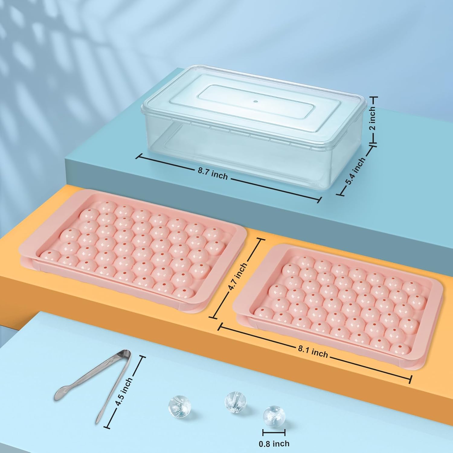 WIBIMEN Ice Cube Tray with Lid and Bin - Round Ice Trays for Freezer with Lid - Ice Cube Trays for Freezer with Ice Container (0.8"-2PACK Pink)