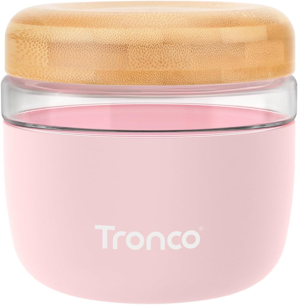 Tronco 24 oz Glass Container with Bamboo Lids, Food Storage Bowls for Soup, Stew & Overnight Oats, Meal Prep, Glass Lunch Bowl Container 100% Leak & Spill Proof, Airtight, BPA-Free- Ideal Gifts