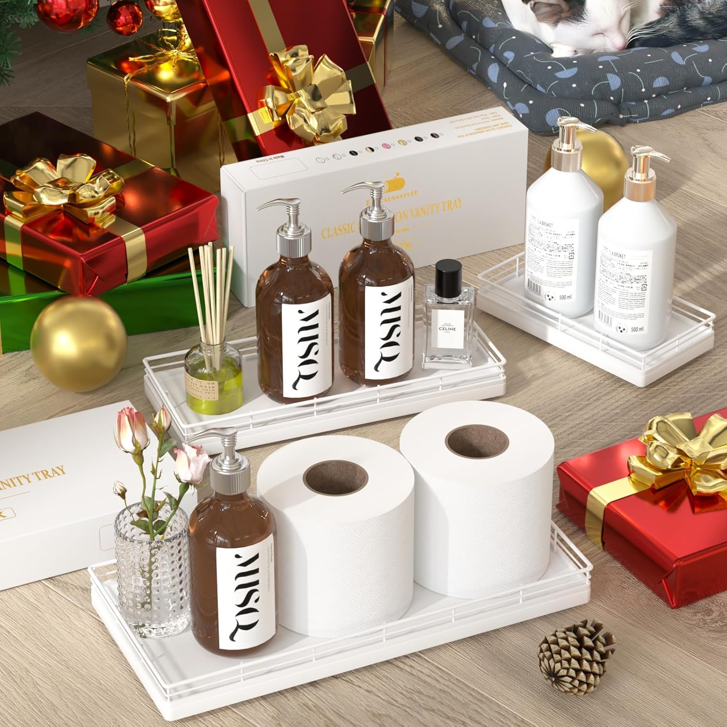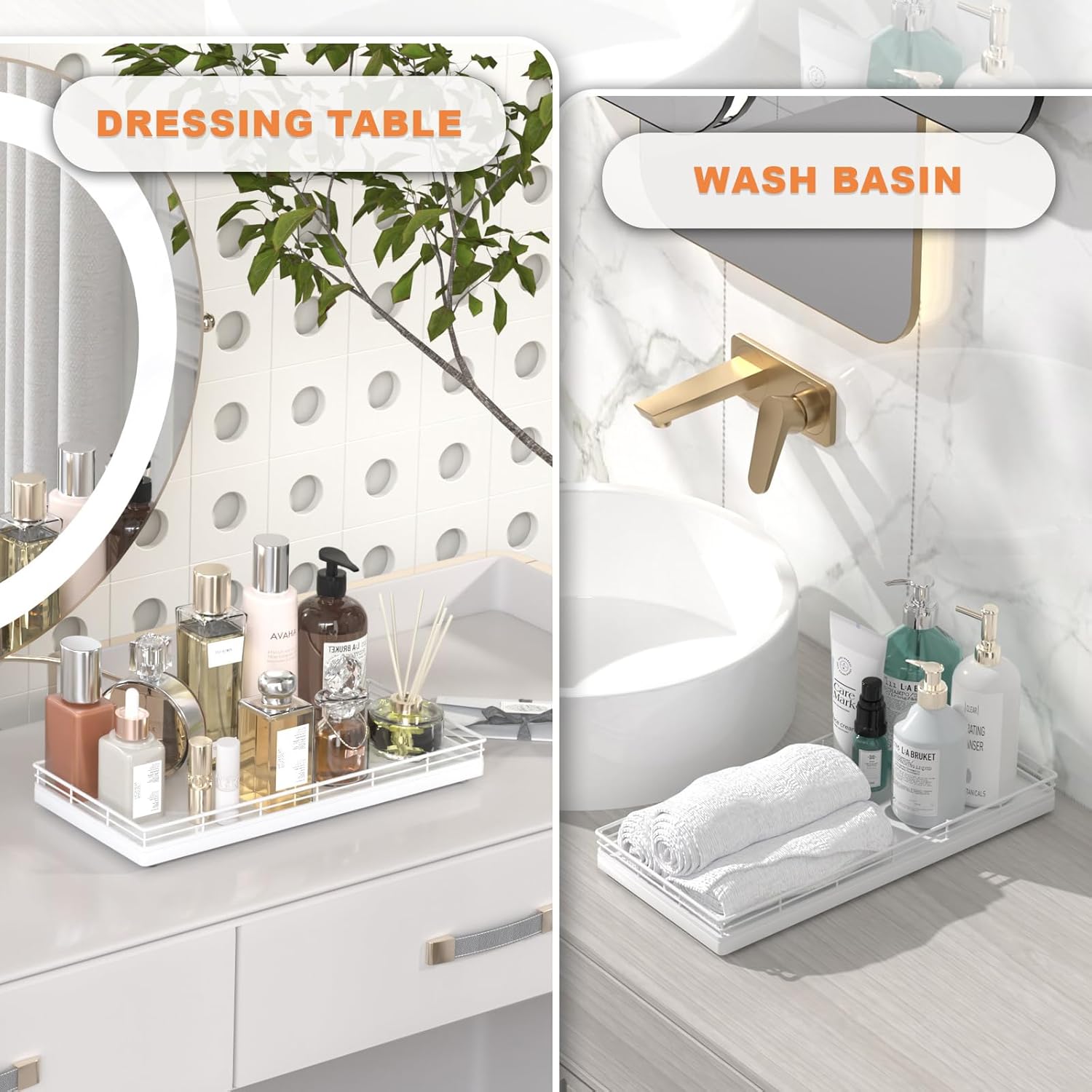 - Considerate Design: This bathroom trays for counter is ready to use without any installation required; Upgraded embedded welding design enhances stability and aesthetics; Raised edge prevent items from slipping; 4 non-slip pads on the bottom protect surfaces from scratches; Simplify your cleaning routine with just a quick wipe-down using a damp cloth, saving you time and hassle