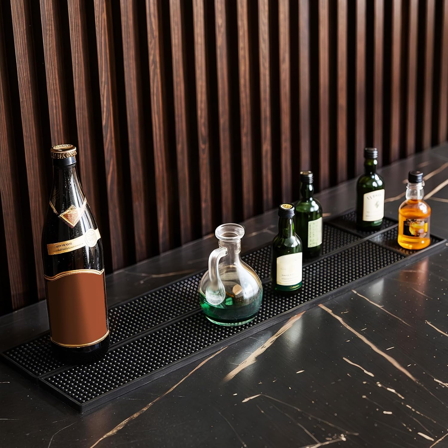 - Anti Slip and Heat Resistant: the back of our bar mat has a sticky coating, it won't move around when you place it on the counter, doubles as a heat insulator, protects your bar or countertop from spills and hot drinkware