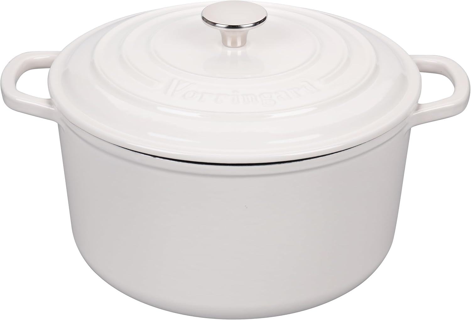 - VERSATILE USE: The Vorringard enameled dutch oven Can be used for slow-cooking, simmering, braising, baking, or roasting a wide range of recipes. Perfect for cooking, serving, moves from refrigerator to stove top or oven to the table