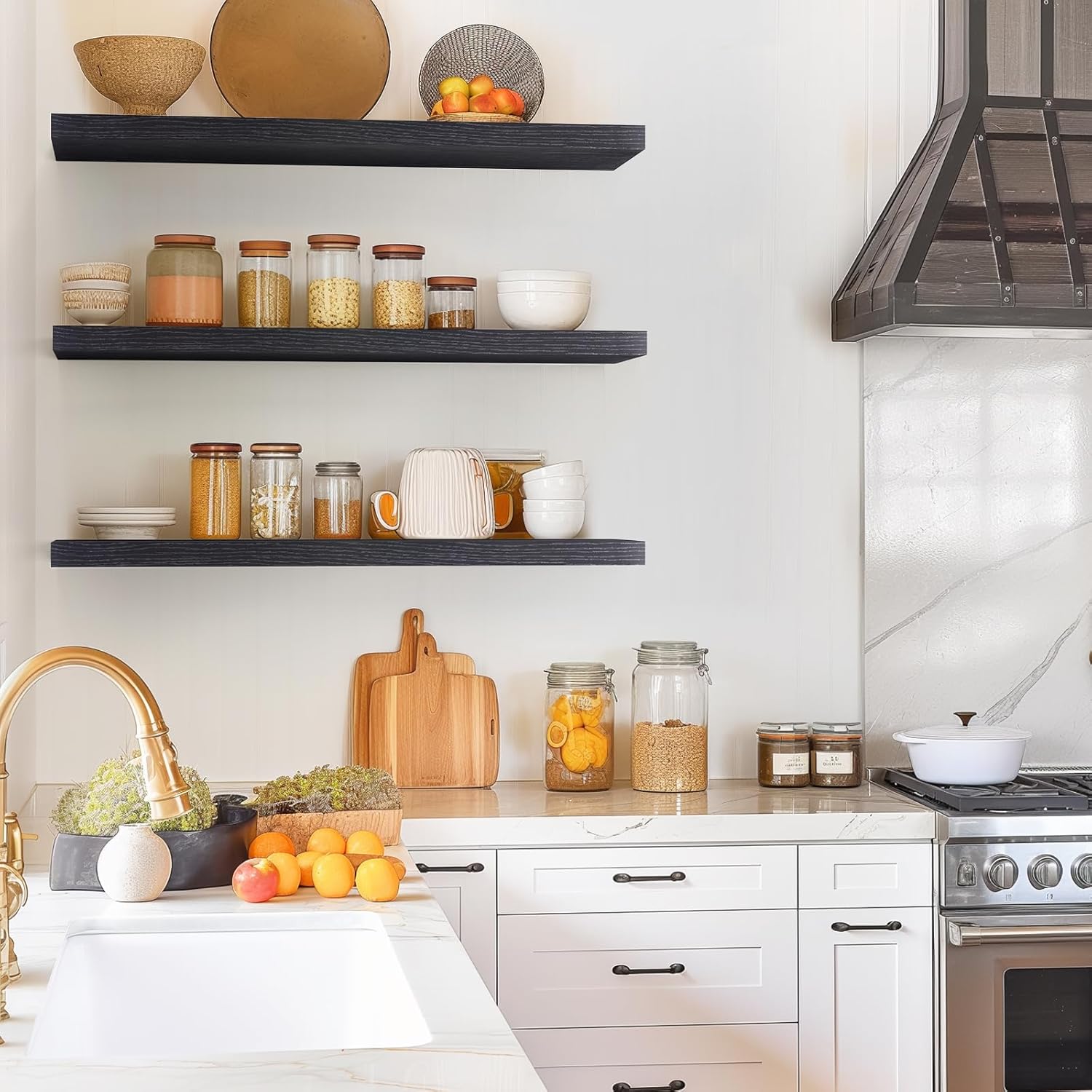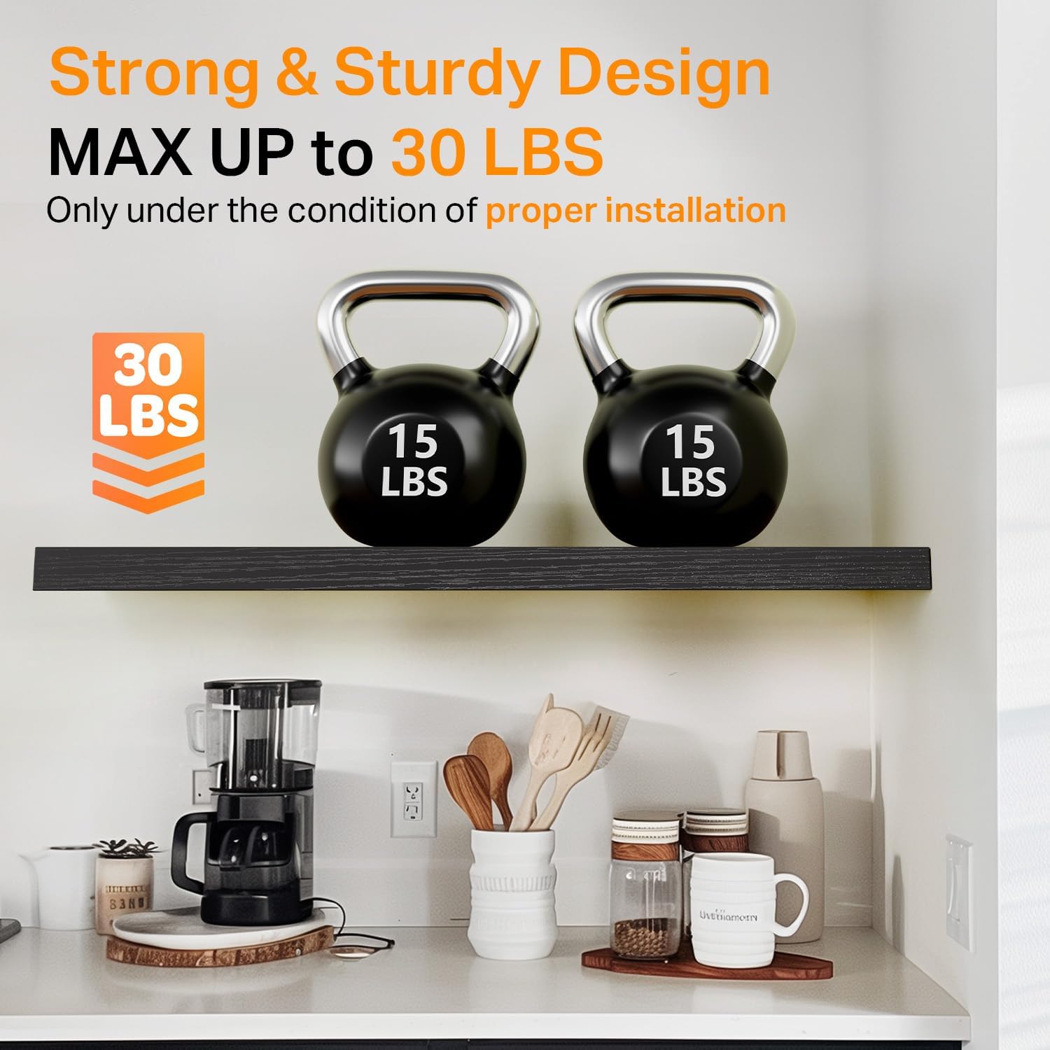 - 𝐒𝐭𝐫𝐨𝐧𝐠 𝐋𝐨𝐚𝐝 𝐂𝐚𝐩𝐚𝐜𝐢𝐭𝐲 – Made from 𝐝𝐮𝐫𝐚𝐛𝐥𝐞 𝐞𝐧𝐠𝐢𝐧𝐞𝐞𝐫𝐞𝐝 𝐰𝐨𝐨𝐝 and reinforced with sturdy brackets, each shelf 𝐬𝐮𝐩𝐩𝐨𝐫𝐭𝐬 𝐮𝐩 𝐭𝐨 𝟑𝟎 𝐥𝐛𝐬, making them ideal for 𝐟𝐮𝐥𝐥 𝐛𝐨𝐨𝐤 𝐜𝐨𝐥𝐥𝐞𝐜𝐭𝐢𝐨𝐧𝐬, 𝐦𝐚𝐠𝐚𝐳𝐢𝐧𝐞𝐬, 𝐥𝐚𝐫𝐠𝐞 𝐣𝐚𝐫𝐬, 𝐜𝐨𝐨𝐤𝐰𝐚𝐫𝐞, 𝐝𝐢𝐬𝐡 𝐬𝐞𝐭𝐬, 𝐋𝐚𝐫𝐠𝐞 𝐩𝐢𝐜𝐭𝐮𝐫𝐞 𝐟𝐫𝐚𝐦𝐞𝐬, 𝐚𝐫𝐭 𝐩𝐢𝐞𝐜𝐞𝐬, 𝐦𝐮𝐥𝐭𝐢𝐩𝐥𝐞 𝐩𝐥𝐚𝐧𝐭𝐬, 𝐬𝐭𝐨𝐫𝐚𝐠𝐞 𝐛𝐨𝐱𝐞𝐬, 𝐨𝐟𝐟𝐢𝐜𝐞 𝐬𝐮𝐩𝐩𝐥𝐢𝐞𝐬, 𝐞𝐥𝐞𝐜𝐭𝐫𝐨𝐧𝐢𝐜𝐬
