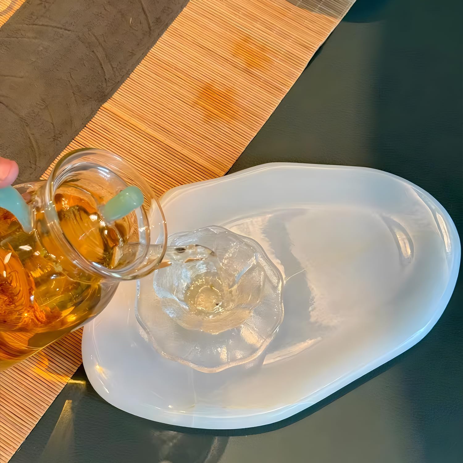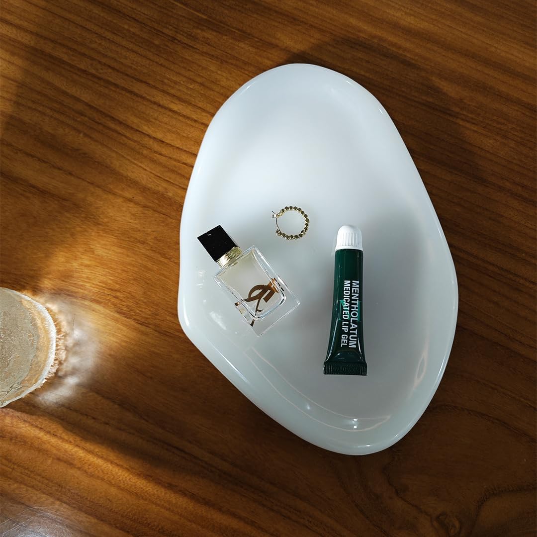 Natural Jade Tray for Jewelry, Food and Daily Items, Irregular Marble Sculpture, Suitable for Home Decor Storage Stone Tray Vanity/Dresser Non-Resin/Non-Ceramic (yunduo-Whie Jade)
