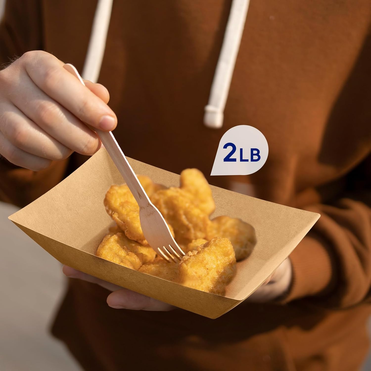 JOLLY CHEF 2lb Paper Food Trays, 100 Pack Disposable Paper Boat, Serving Boats, Food Holder Trays for Snacks French Fries Nachos Hot Dog Tacos BBQ Party