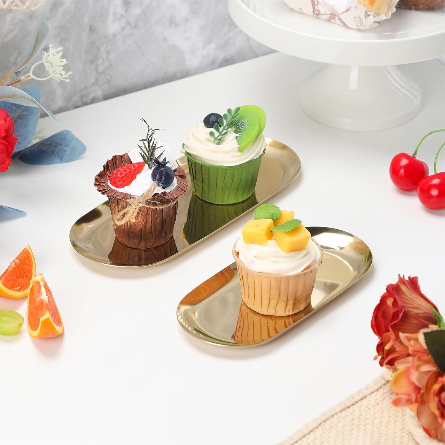 IBWell 2 pcs Gold Decorative Serving Tray for Bathroom, Small Jewelry Tray, Long Tray, Gold Jewelry Tray, Jewelry Bowl Dish Decorative Bathroom Tray -7”