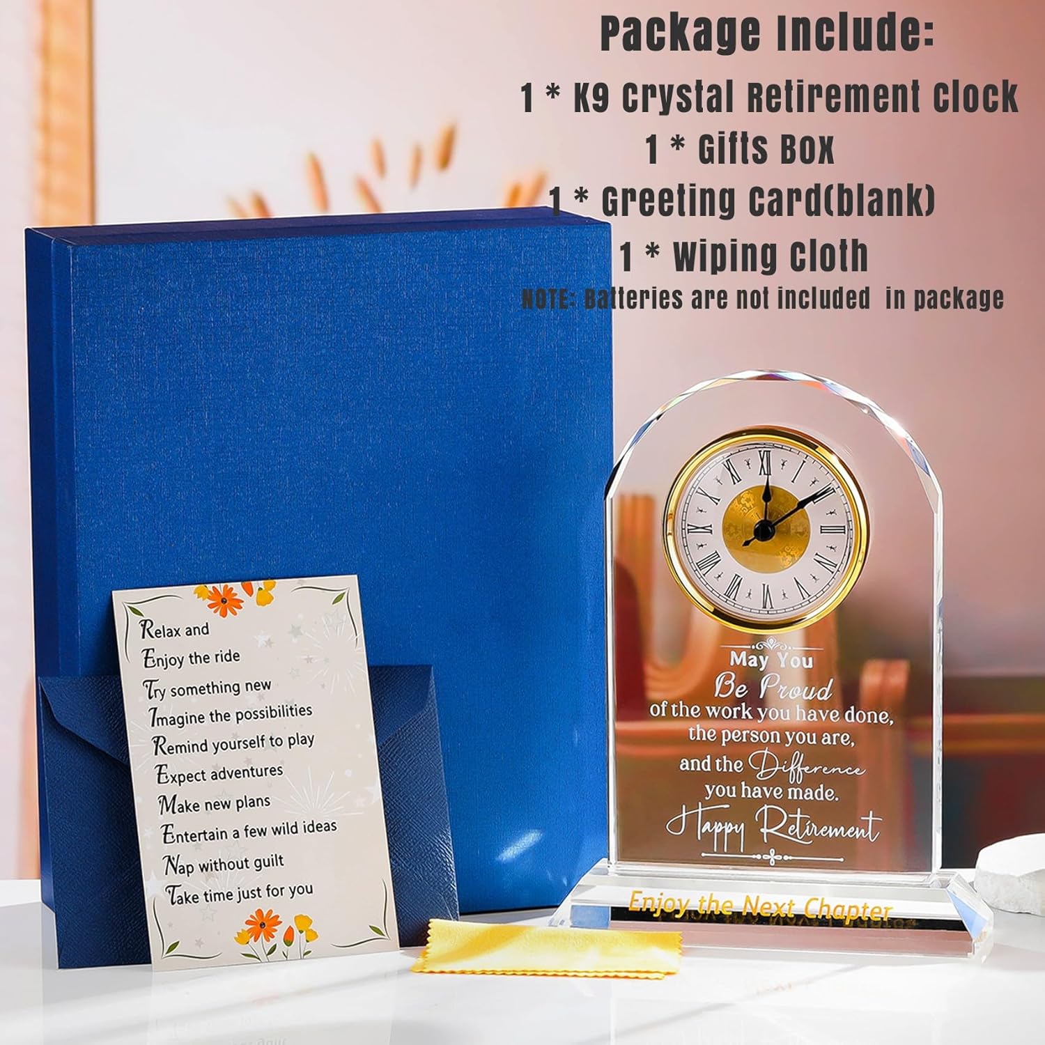 - Meaningful Retirement Gifts: After decades of hard work, you deserve a special gift to celebrate your retirement. The inside of the clock is engraved with blessing words: ’‘May you be proud of the work you have done, the person you are, and the difference you have made. Happy Retirement. Enjoy the Next Chapter.'' The perfect retirement gift to say goodbye to your working years