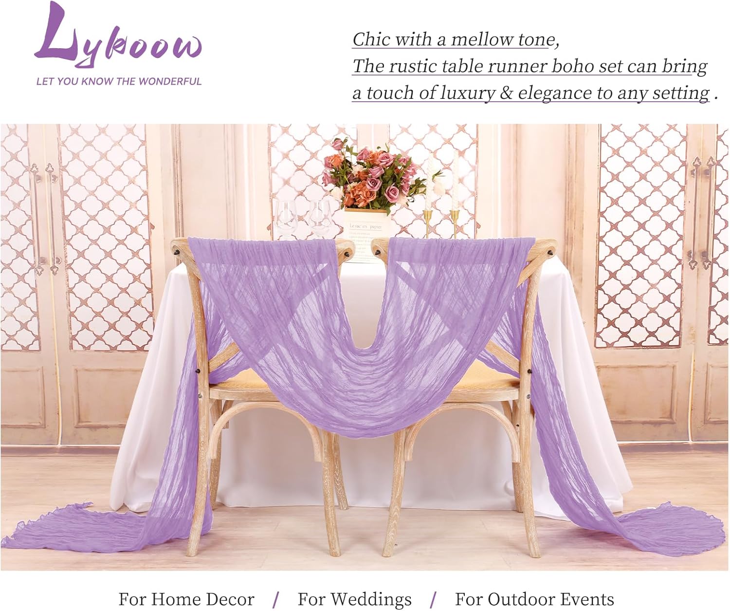 - 【Elegant Display for Boho Tablecloth Runner】- The table runners are made of cotton cheesecloth with wrinkles. Soft to the touch, reusable, washable and fade resistant. Great for creating beautiful pleats or letting them float loosely on the floor, adding a touch of unique and elegant to your parties and events. Use Lykoow cheesecloth table runners for any occasion or decorative need.
