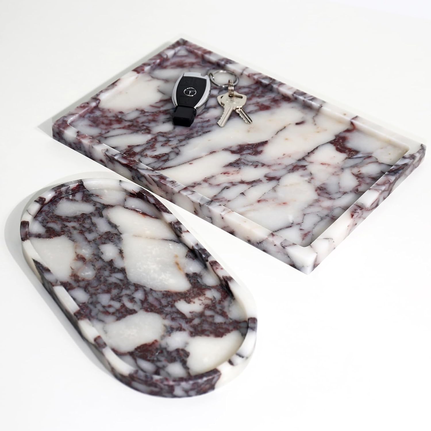 Real Luxurious Natural Marble Vanity Tray Genuine Marble Storage Tray for Home Decor Stone Tray for Bathroom/Kitchen/Vanity/Dresser Non-Resin/Non-Ceramic/Viola Oval Set