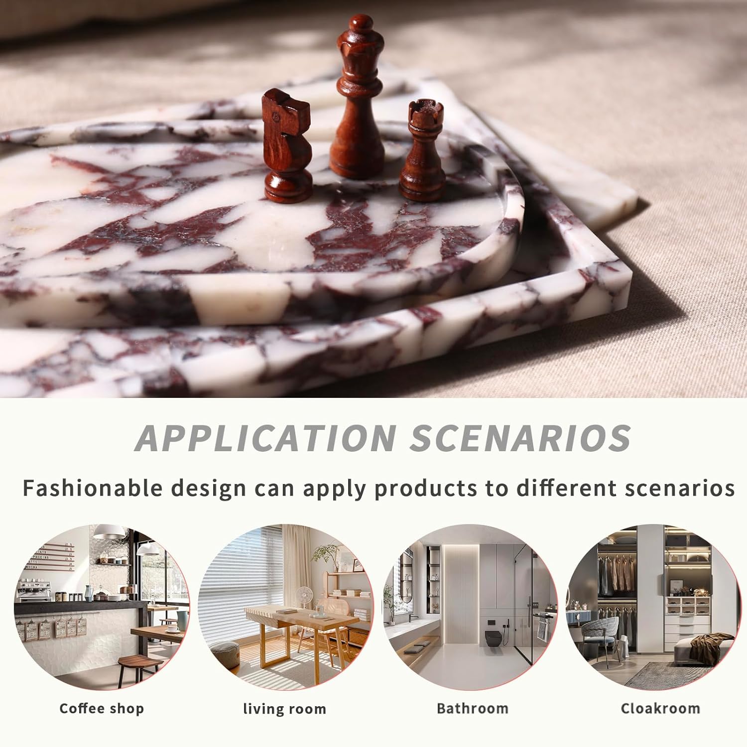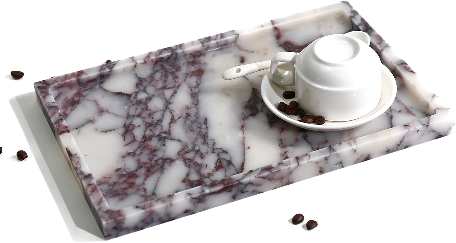 - This fashionable and functional natural marble decorative tray can be used as jewelry tray, perfume tray, makeup tray, trinket tray, key tray or even coffee tray tea tray. The bottom of this natural marble vanity tray is equipped with a non-slip pad to prevent the tray from slipping or falling and protect your furniture and counter from being scratched.