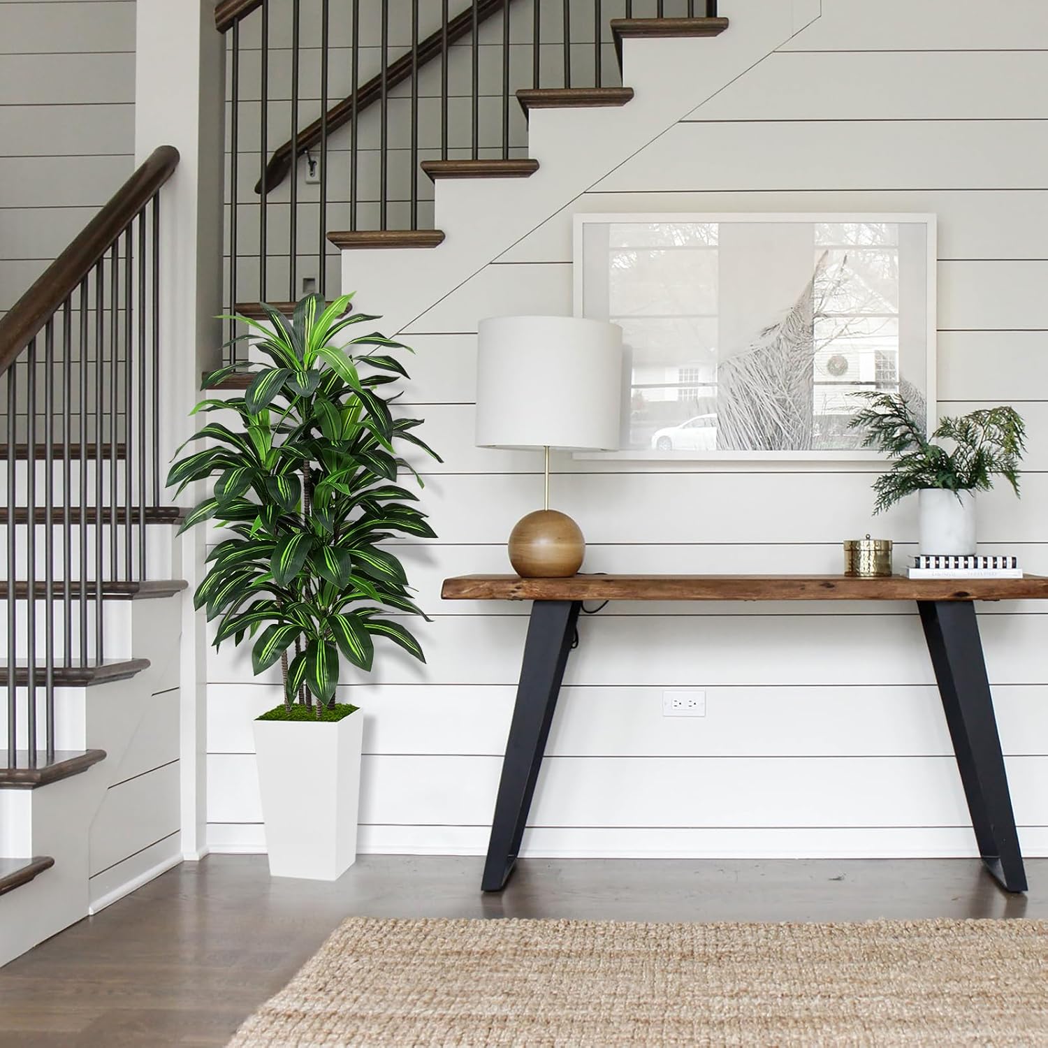 - Proportional and Quality Planter: Our planter has been meticulously designed and sized to seamlessly complement our fake dracaena tree, offering a perfect balance of aesthetics and functionality. Additionally, products that include all the essential components: a fake tree, a planter and artificial moss, eliminating the need for extra purchases and saving customers time and effort.