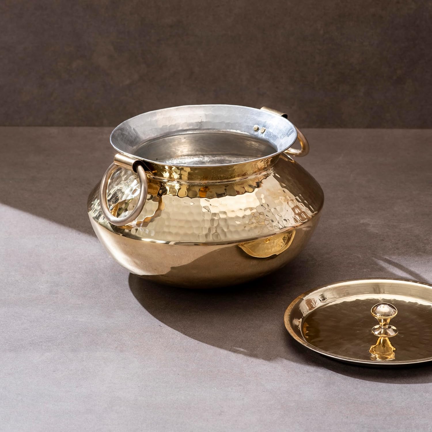 P-TAL Brass Patili with Lid and Handles for Cooking Teflon Free Degchi 3L Brass Handi for Cooking