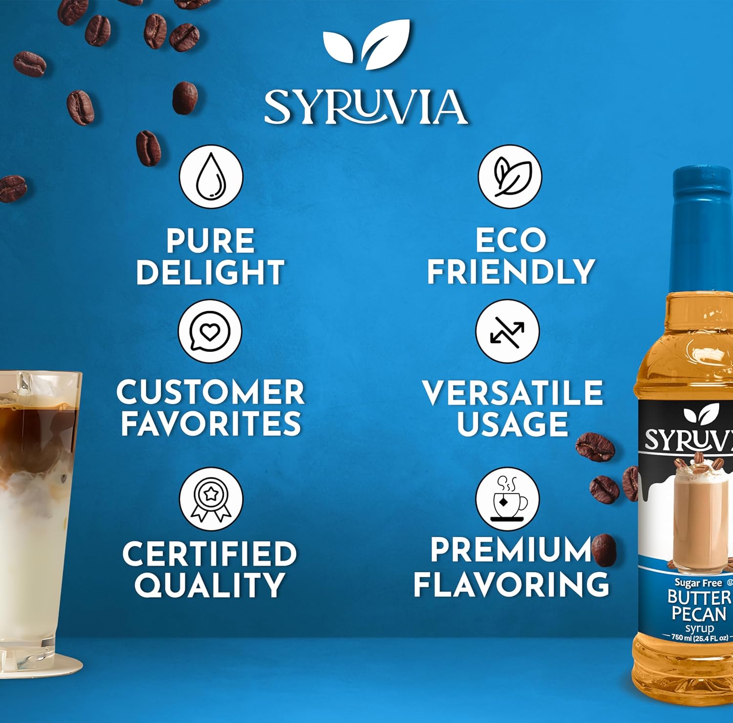 Syruvia Sugar Free Coffee Syrup, Butter Pecan Flavored Syrup for Drinks, Lattes, and Desserts – 25.4 fl oz