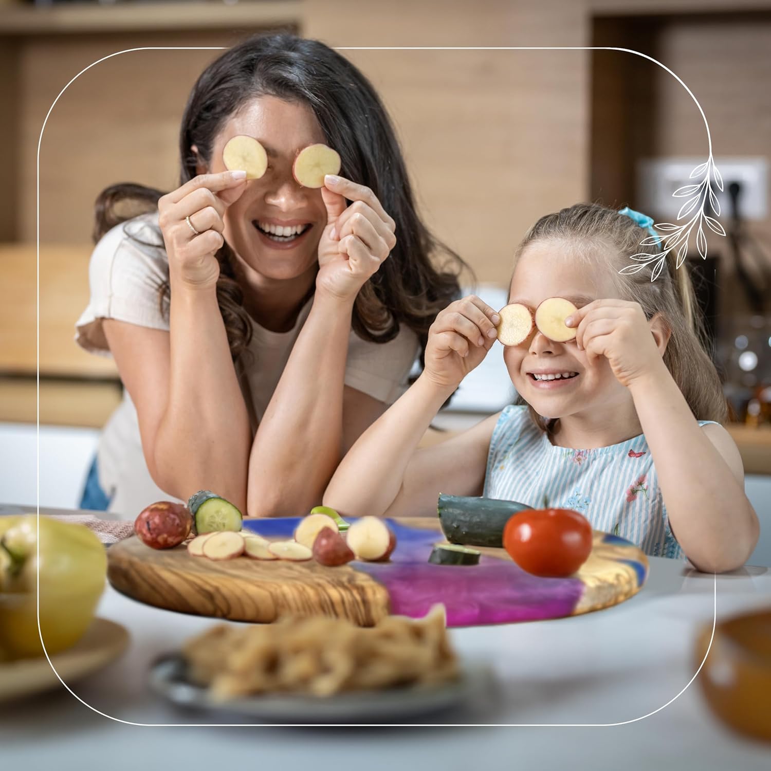 - STYLISH PRESENTATION: The natural wood grain and round shape create an elegant and rustic aesthetic for any gathering. Our resin handmade large round wooden cutting boards for kitchen make a heart-warming centrepiece on any dining table.