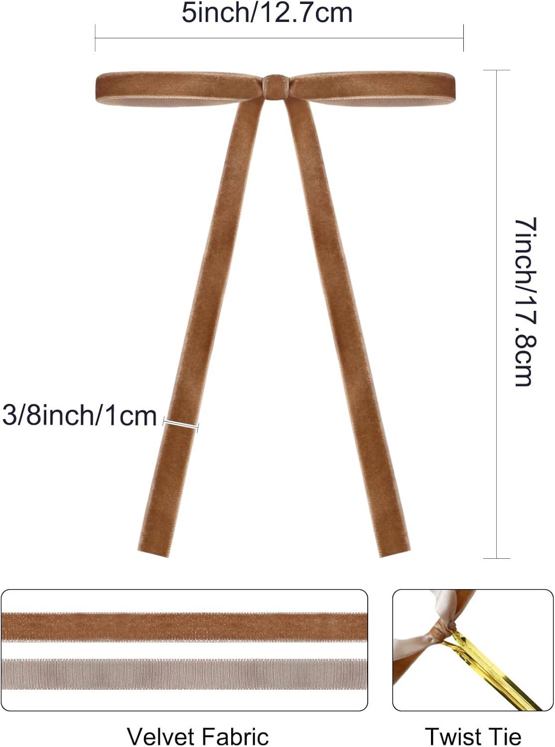 SIMISI RIBBON 24Pcs Camel Christmas Velvet Ribbon Bows Decorations Xmas Ornaments Vintage Decor for Tree, Wreath, Garland (3/8'' Width, 5 * 7 inch)