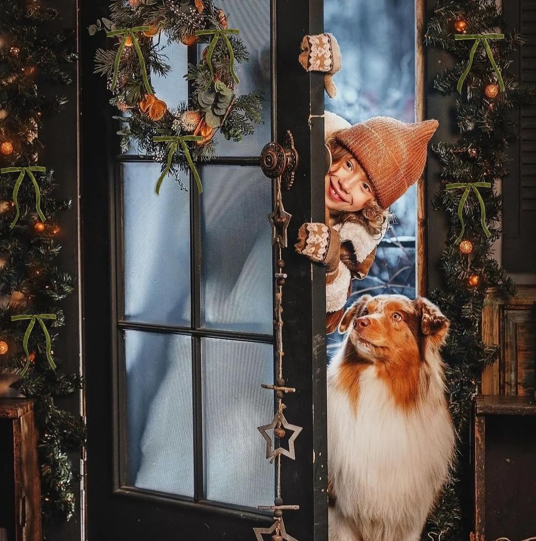 SIMISI RIBBON 24Pcs Olive Green Christmas Velvet Ribbon Bows Decorations Xmas Ornaments Vintage Decor for Tree, Wreath, Garland (3/8'' Width, 5 * 7 inch)