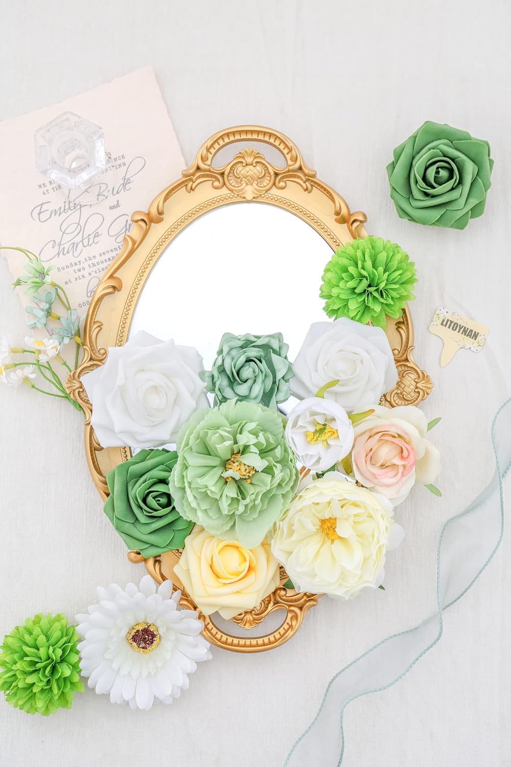- Unique Flower Combo:This is a combo pack of different colors of green, white and yellow flowers and different types as a theme. Vibrant color and elegant touch make it more real. Ideal for bridal and bridesmaid bouquets, floral arrangements, table centerpieces, and more.