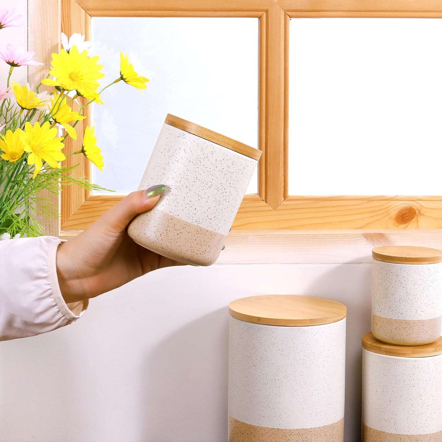 Yangbaga Canister Sets for Kitchen Counter, 20 OZ Large Ceramic Food Storage Jars with Airtight Wood Lids, Large Kitchen Canisters for Coffee, Sugar, Tea, Flour, Spice