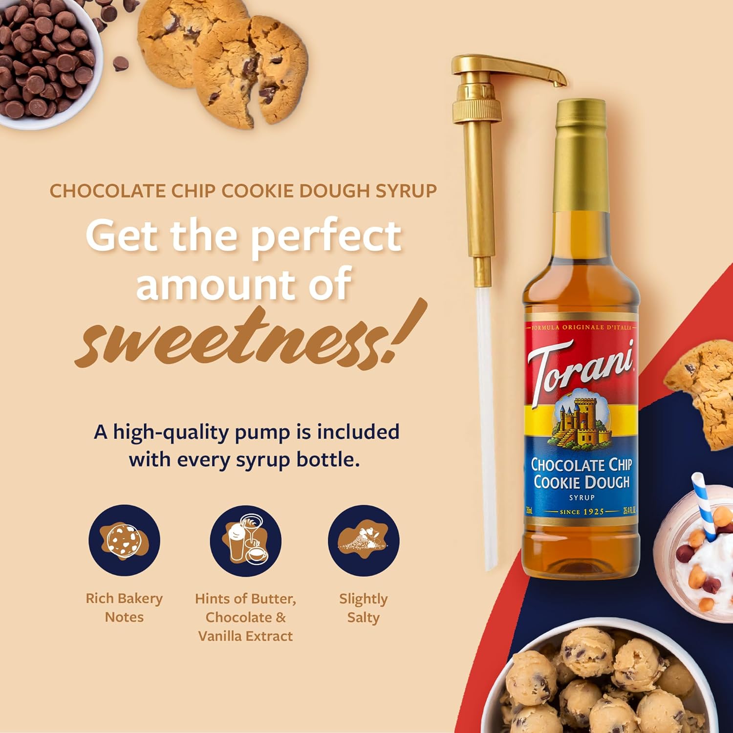 Torani Chocolate Chip Cookie Dough Coffee Syrup, Flavored Syrup for Drinks, Pump Included, 25.4 Fl Oz