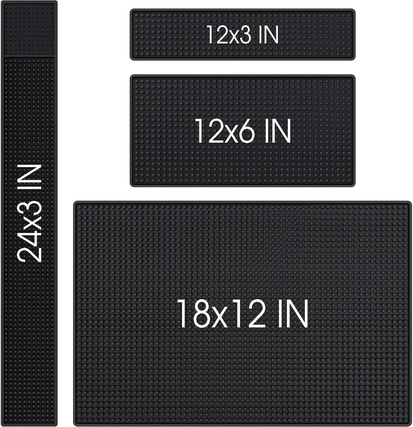 4 Pcs Thick Rubber Bar Mats for Bartending, Durable Non-slip Spill Mat for Countertop, Home Kitchen, Coffee Bars, and Restaurants Accessories, Black(12" X 3"+12" X 6"+18" X 12"+24" X 3")