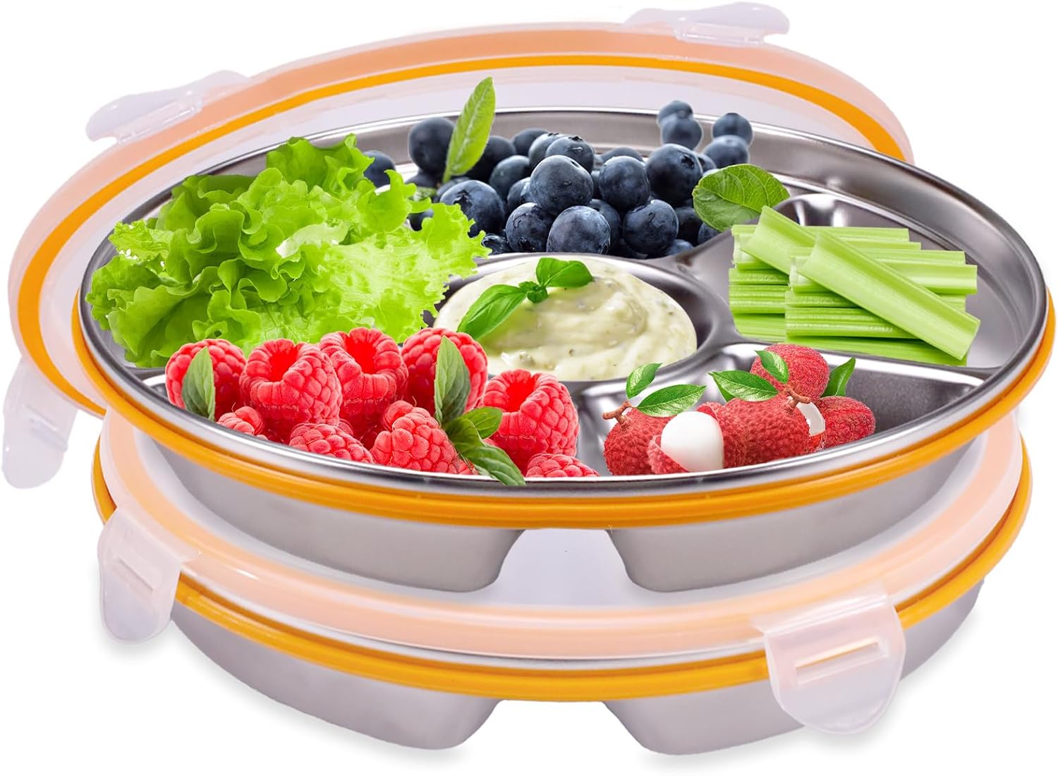 - 【Versatile 6-Compartment】 The round veggie tray with lid features 6 compartments, ensuring that vegetables, fruits and nuts can be neatly separated, while the central compartment is good for holding salad dressings, ketchup, and other condiments.